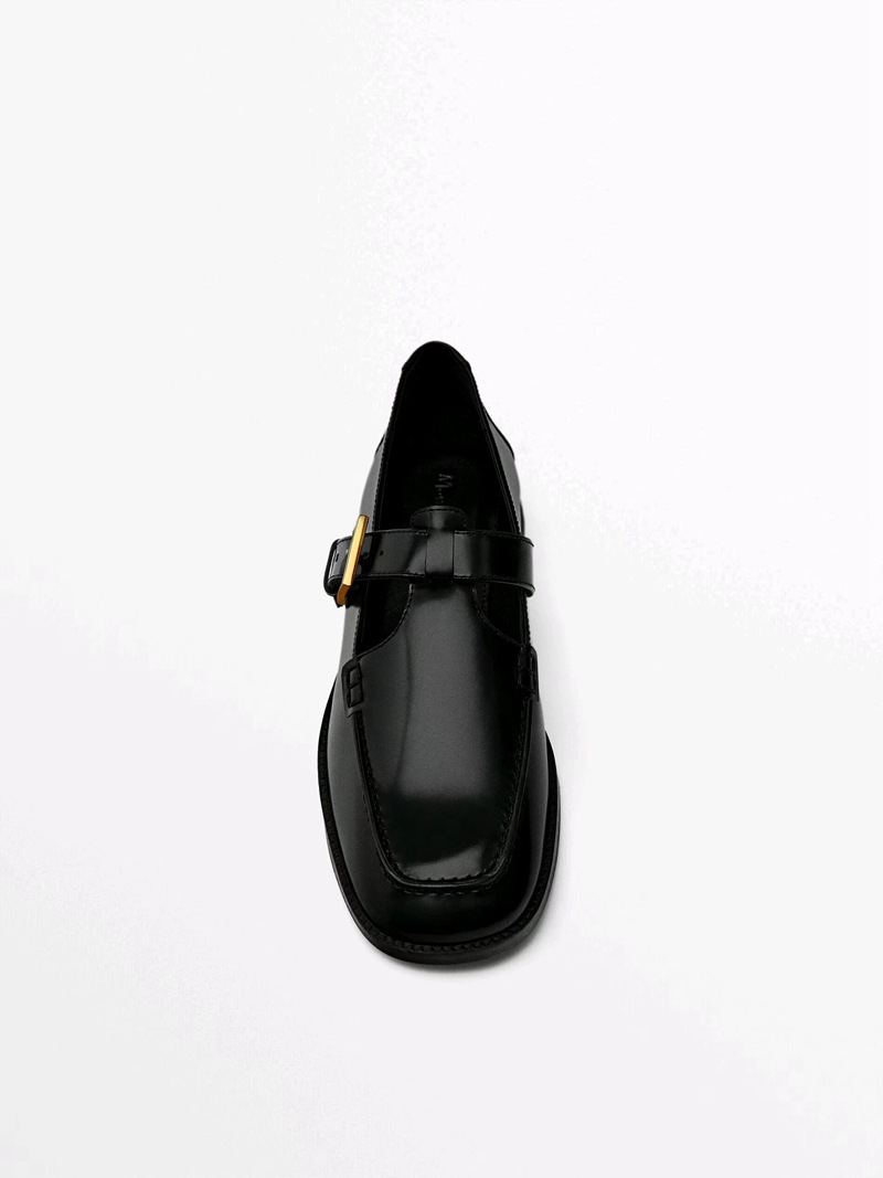 마시모두티 여성화 2025 가을 겨울 신상 플랫 슈즈 블랙 가죽 신발 레트로 스퀘어토 로퍼스토어 가기