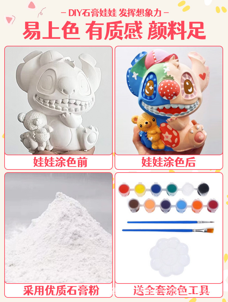 Kulomi 석고 인형 대형 인터넷 빨간색 폭발 어린이 색칠 줄기 diy 화이트 배아 도매 안료
