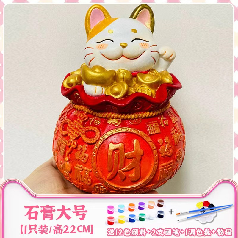 • 인터넷 연예인 모델 [리얼석고] 복주머니 행운의 고양이 - 무료 컬러링 세트 - 63호