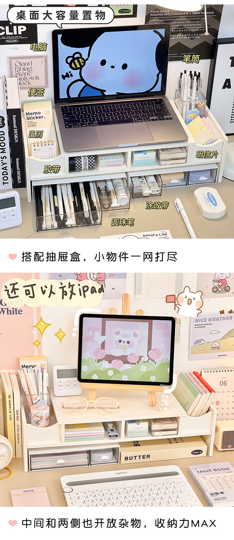 Ins 컴퓨터 높은 랙 데스크탑 노트북 데스크탑 모니터 스토리지 테이블 기숙사 사무실 데스크탑 데스크 스토리지스토어 가기