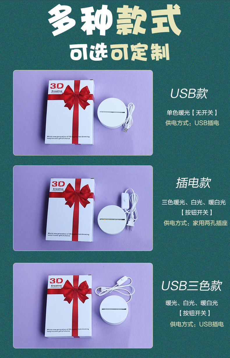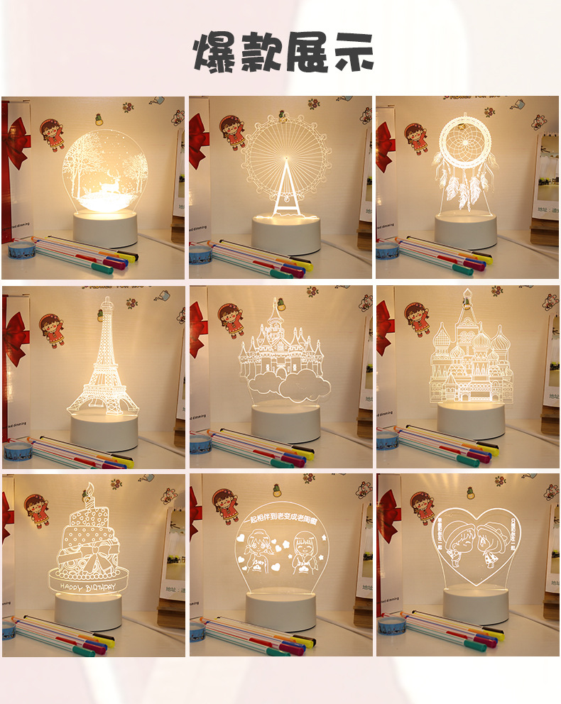 本工厂亚克力3D创意台灯支持设计、DIY、来图定制,产品图案型号请联系客服,量大都可定制,欢迎咨询。
