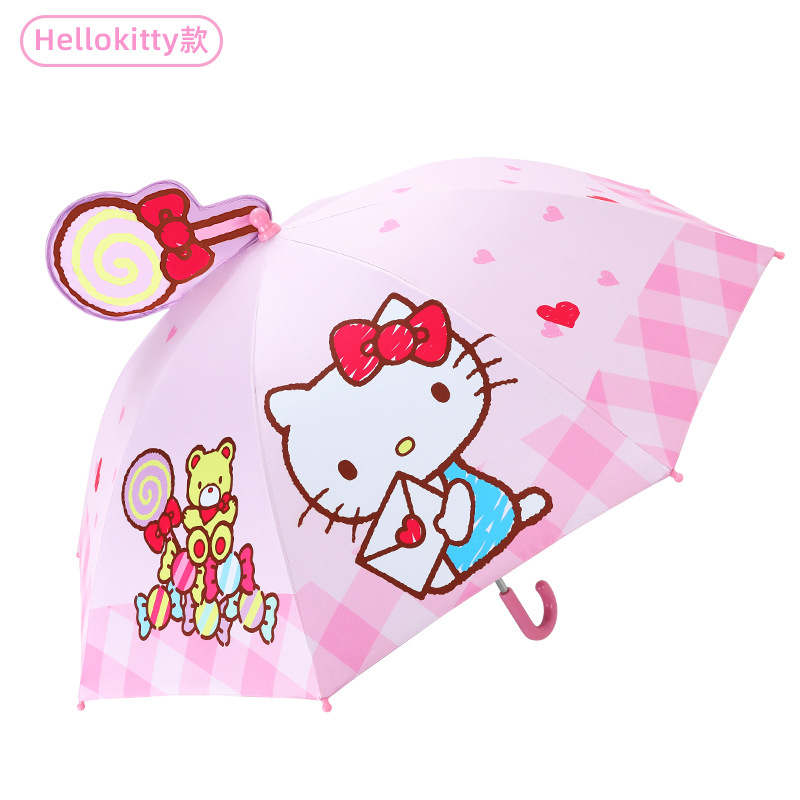 정품 Sanrio 무료 배송 공장 스트레이트 헤어 만화 강화 바람 방지 스트레이트 우산 인터넷 연예인 귀여운 우산 자외선 차단