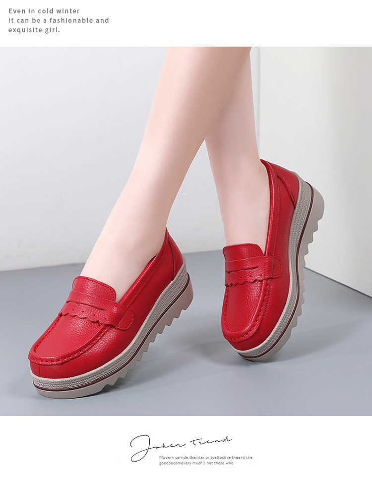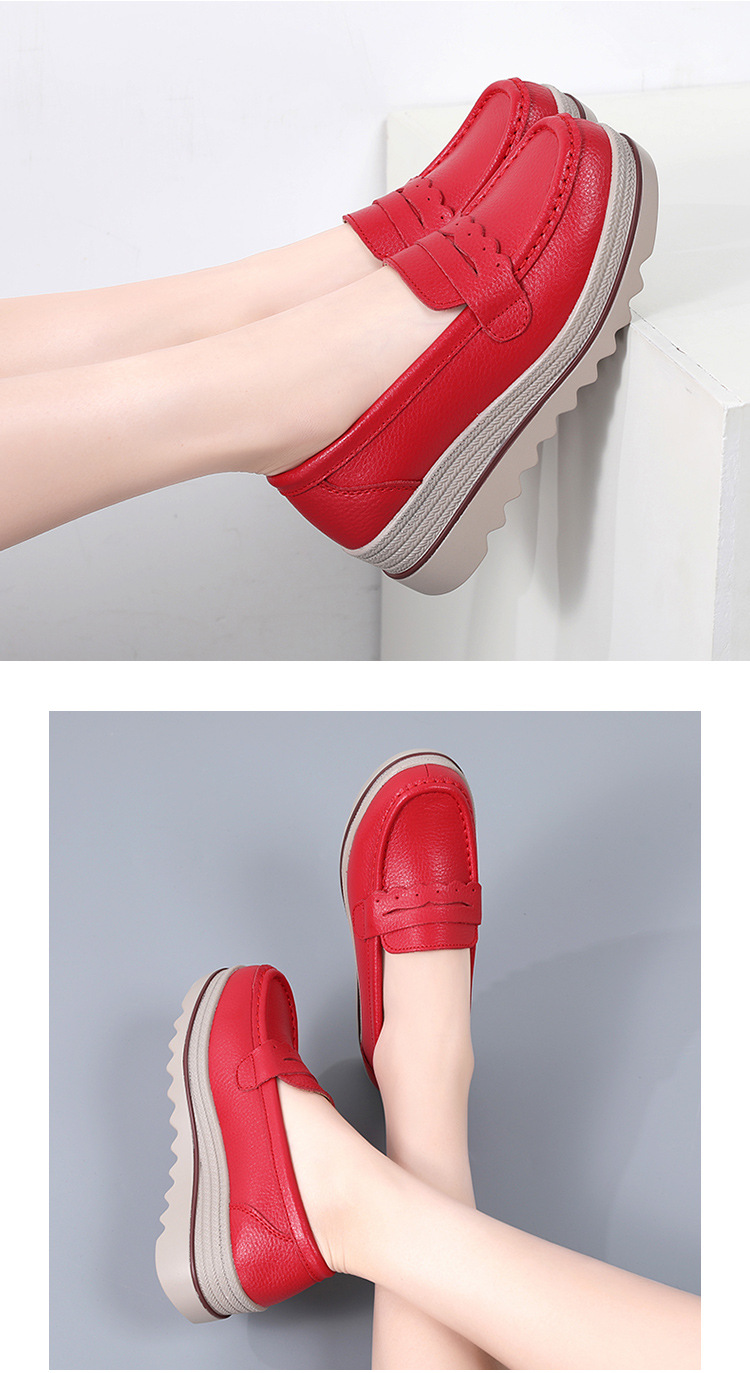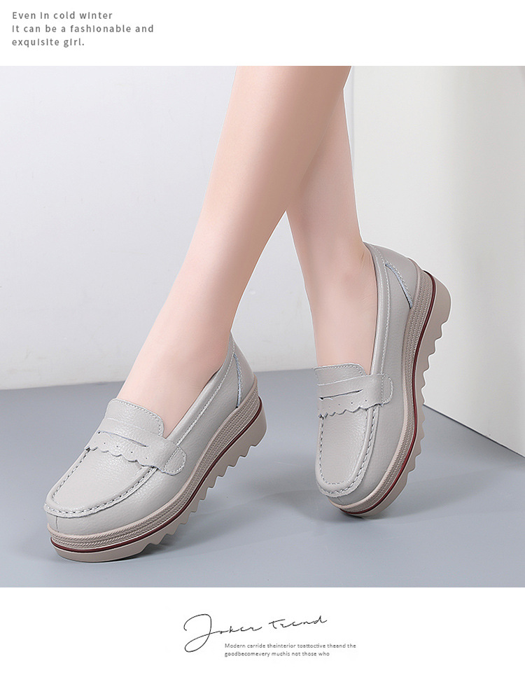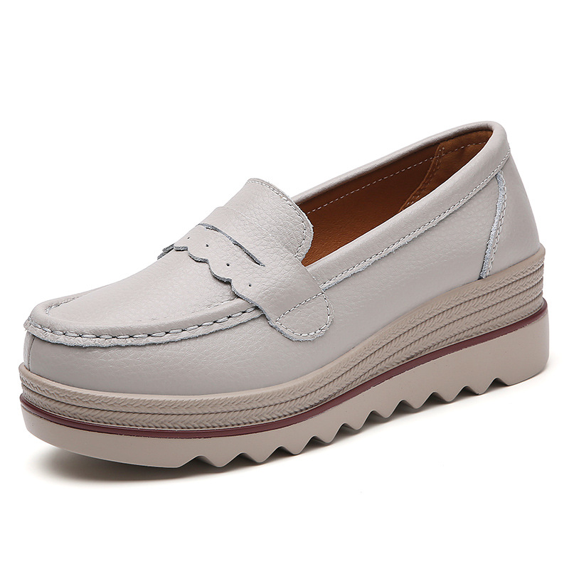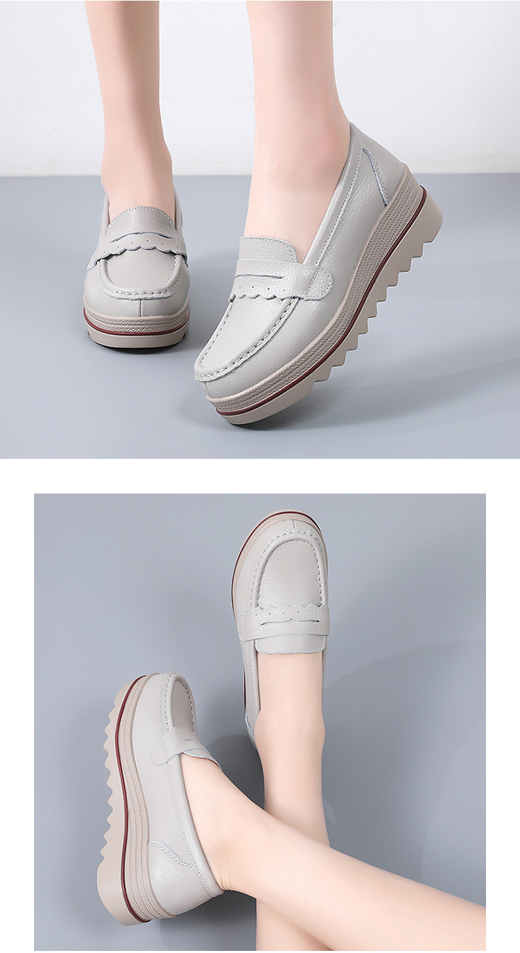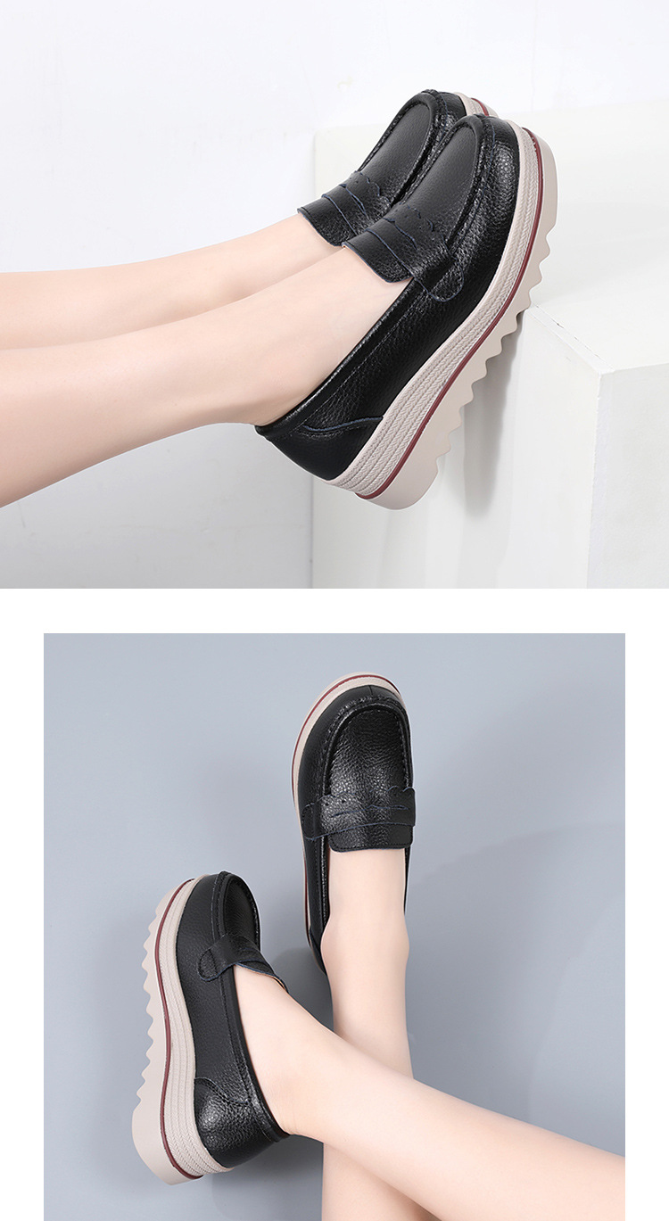 봄 2024 새로운 정품 가죽 운동화 한국 스타일 유행 두꺼운 단독 흔들 신발 여성 싱글 레이어 신발 엄마 신발 캐주얼 여성 신발스토어 가기