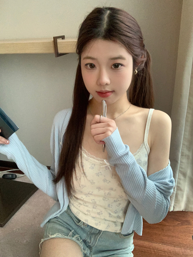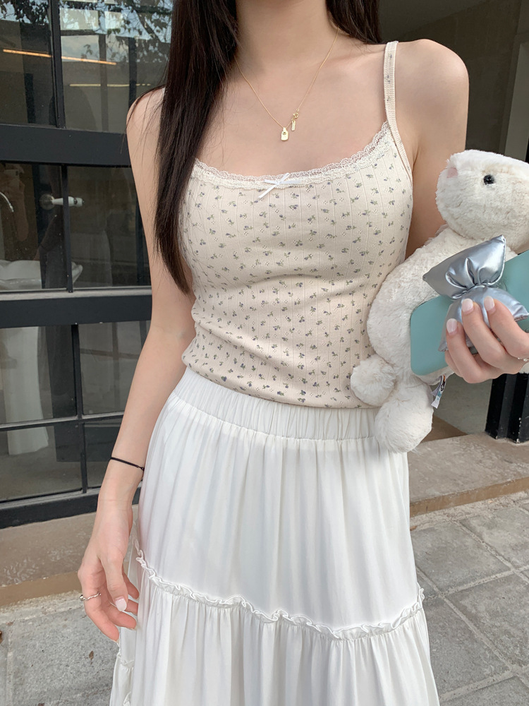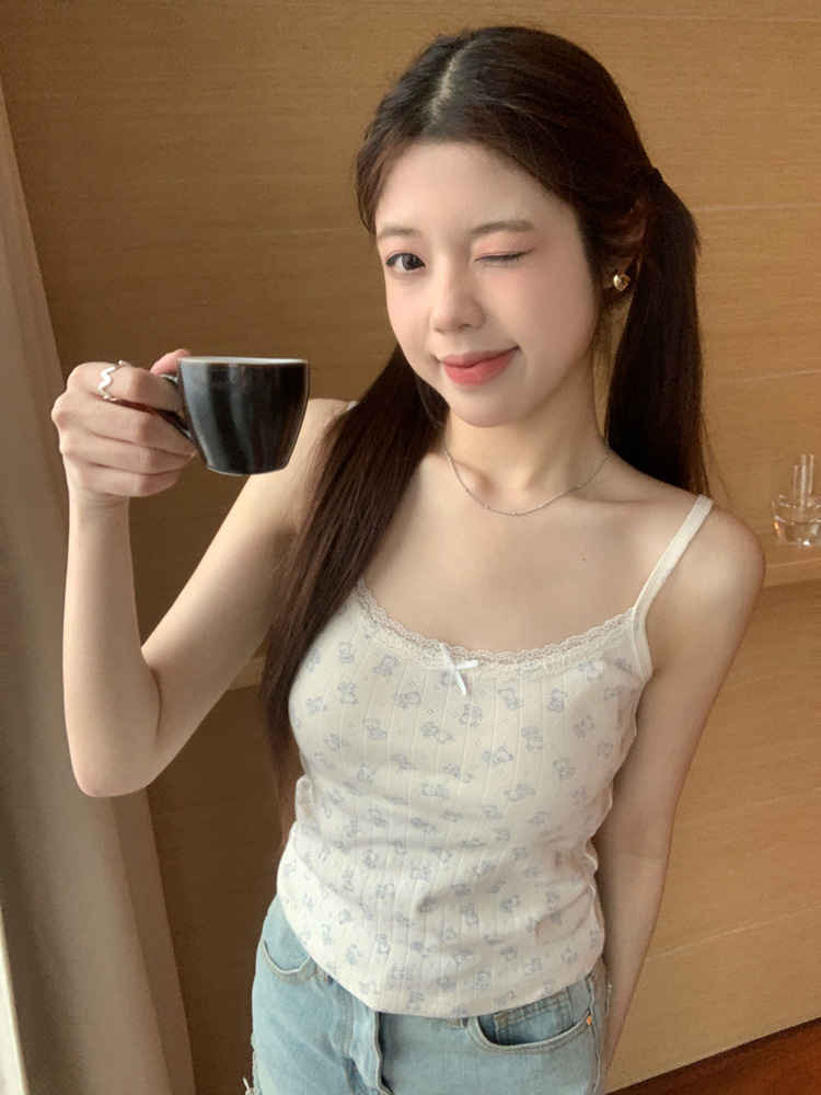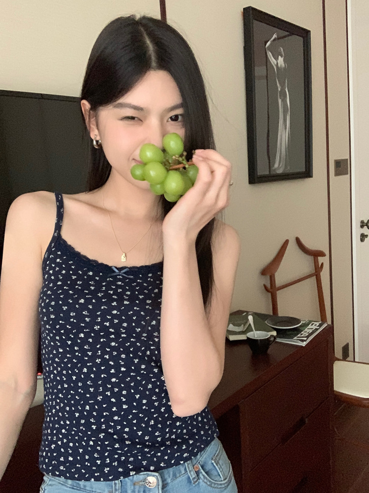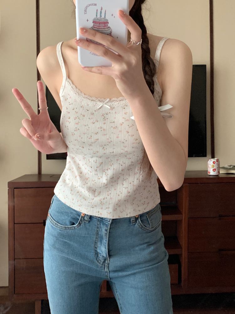1049 # 레이온 자카드 짧은 연령 감소 캐미솔 2024 여름 뜨거운 여자는 슬림 백 여성을 착용스토어 가기