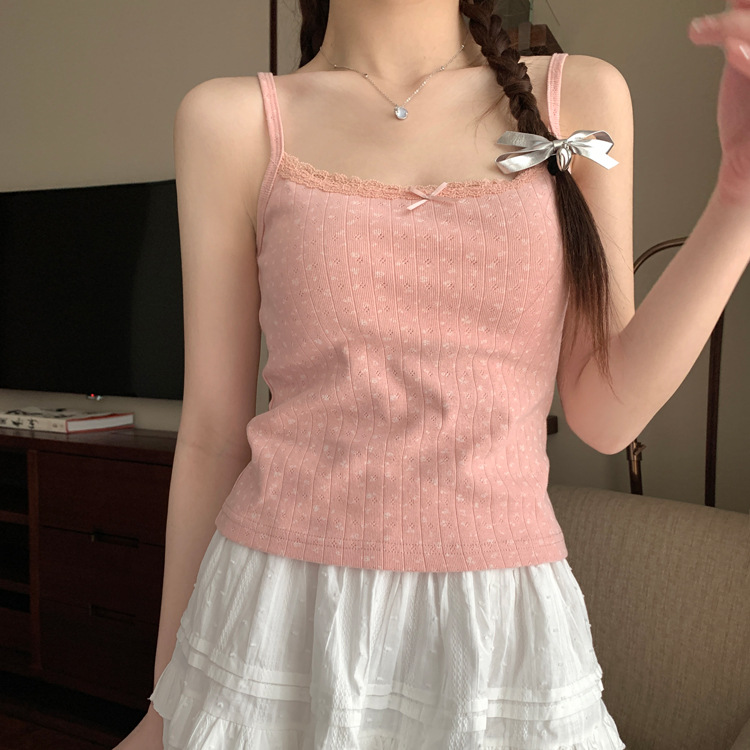 1049 # 레이온 자카드 짧은 연령 감소 캐미솔 2024 여름 뜨거운 여자는 슬림 백 여성을 착용