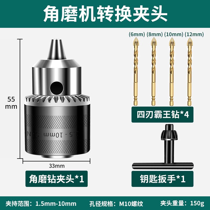 • 앵글 그라인더 변환 척 + 4날 오버로드 드릴 4개