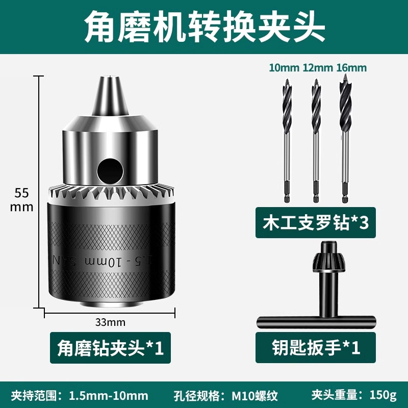• 앵글 그라인더 변환 척 + 목공 지지 드릴 3개