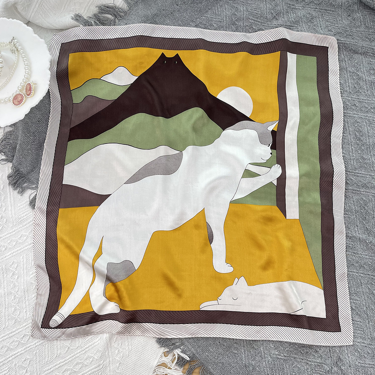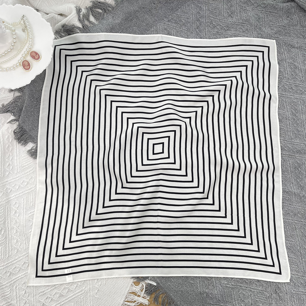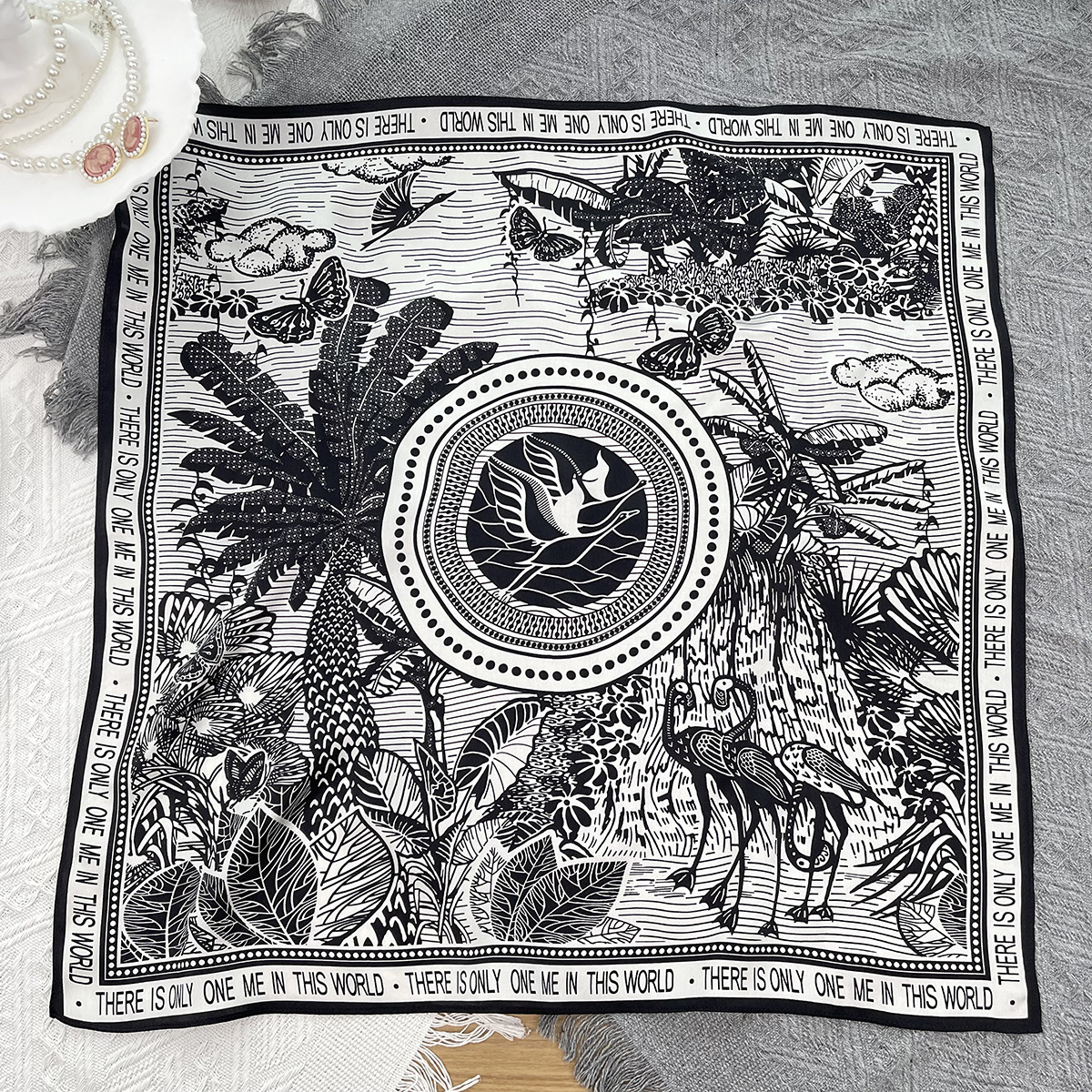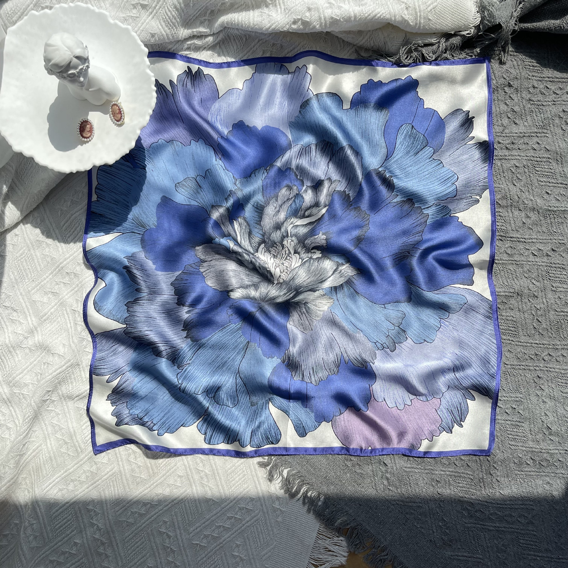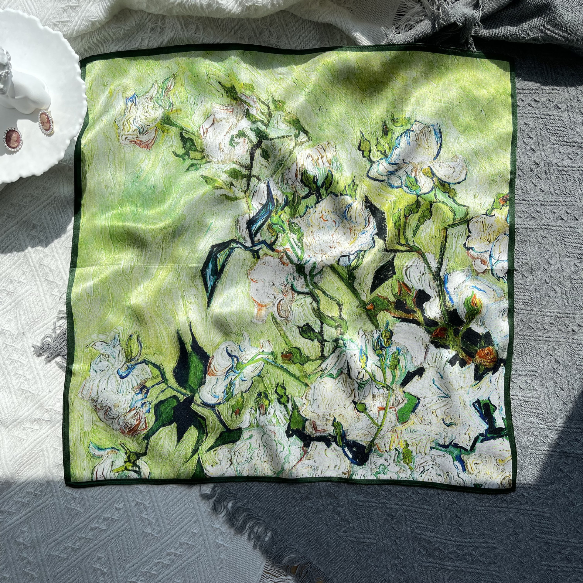 25년 신상 블랙 캐슈 플라워 실크 스카프 여성용 여름 자외선 차단 53cm 스몰 스카프 고급스러운 패션 스카프스토어 가기