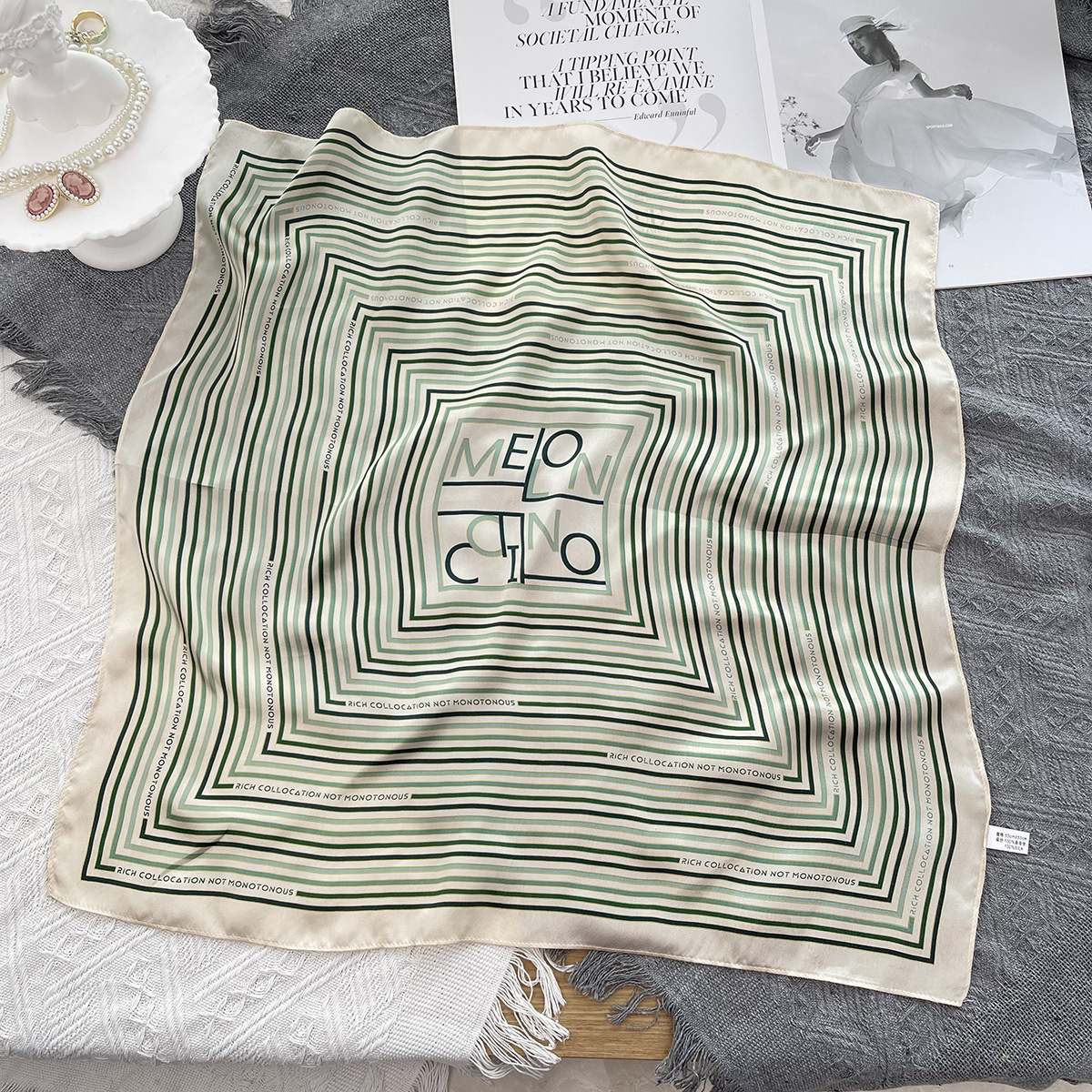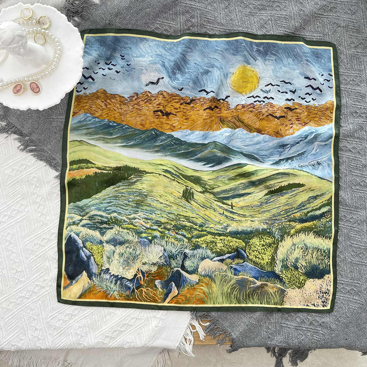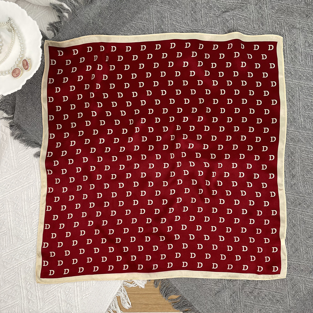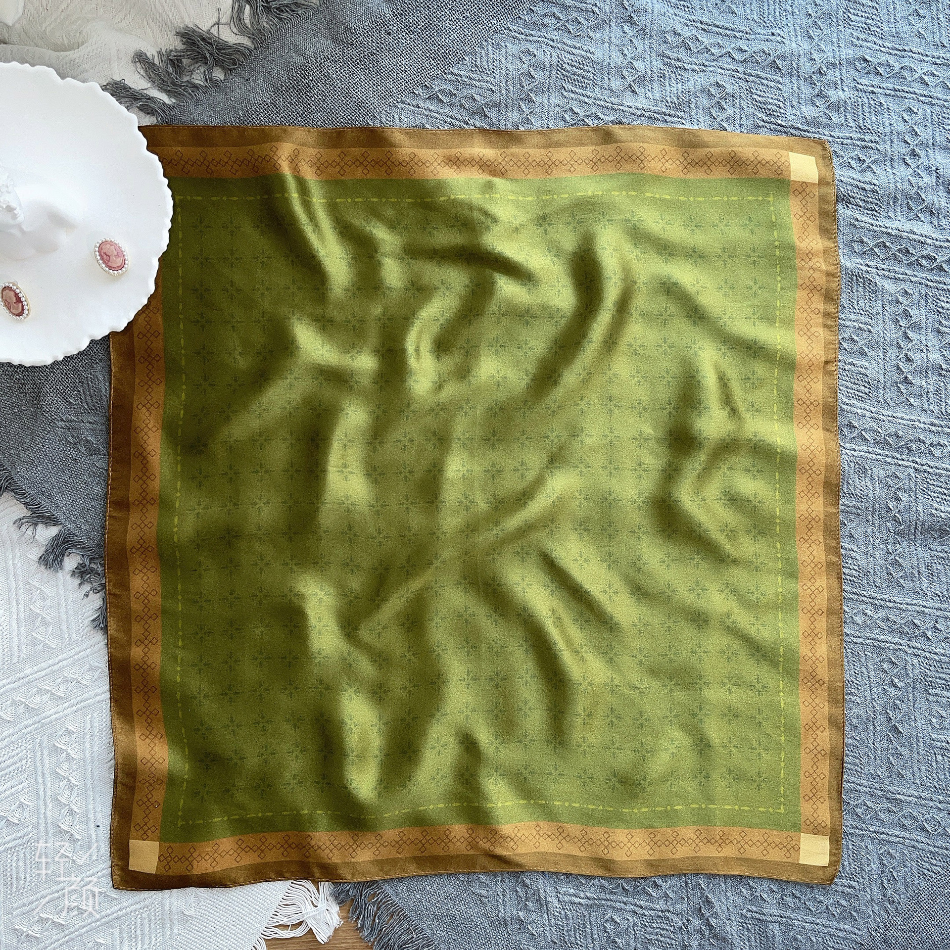 25년 신상 블랙 캐슈 플라워 실크 스카프 여성용 여름 자외선 차단 53cm 스몰 스카프 고급스러운 패션 스카프스토어 가기