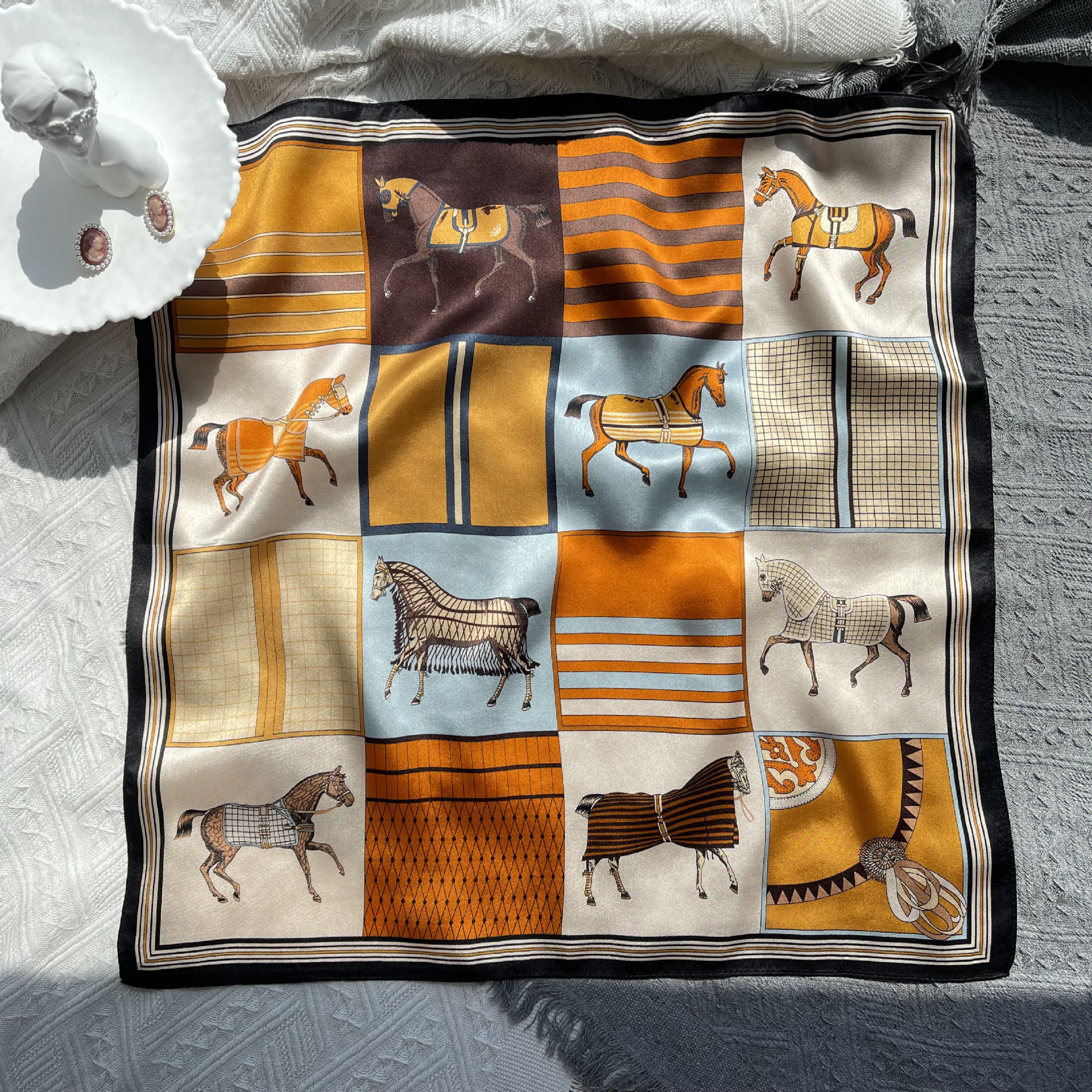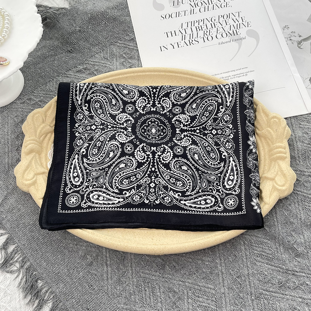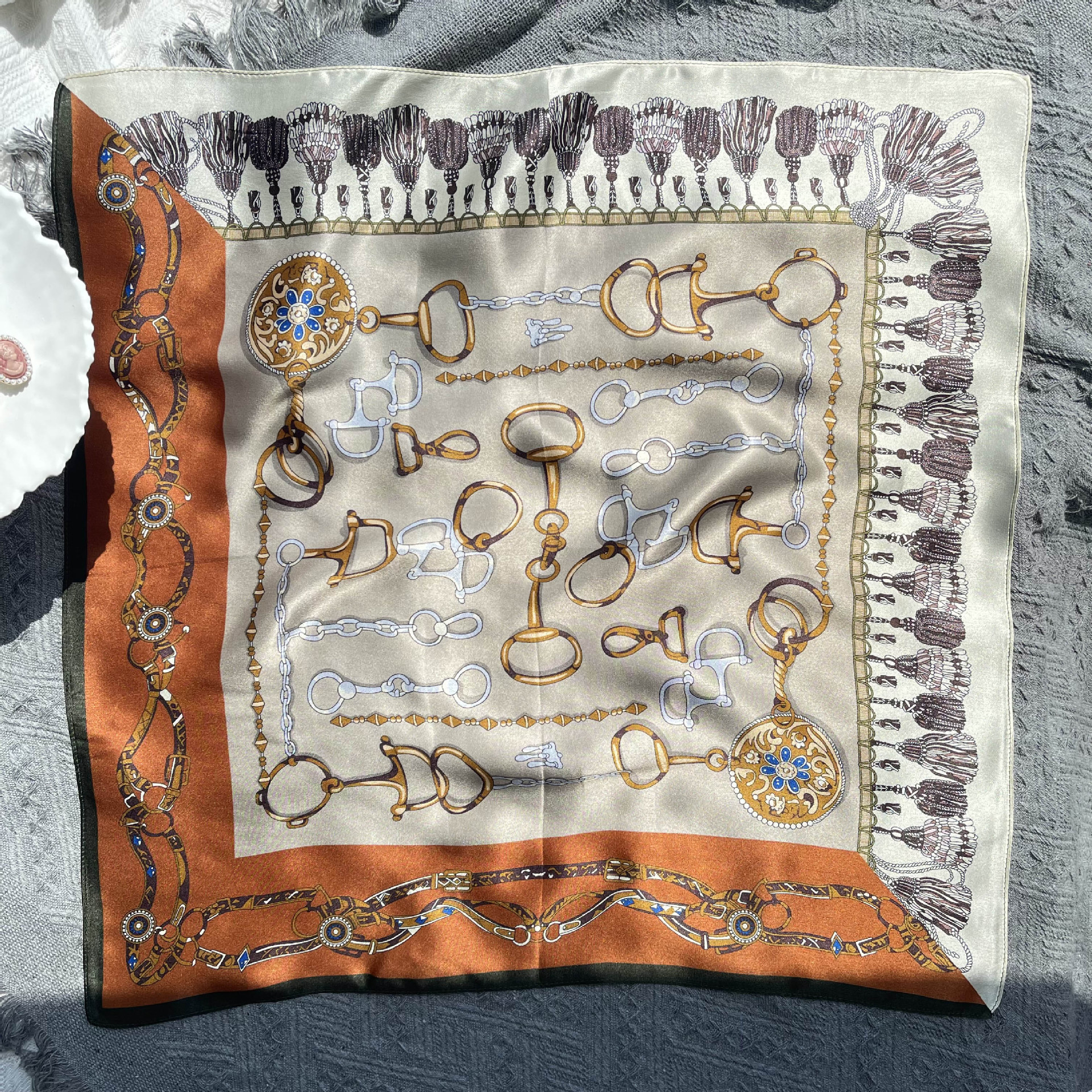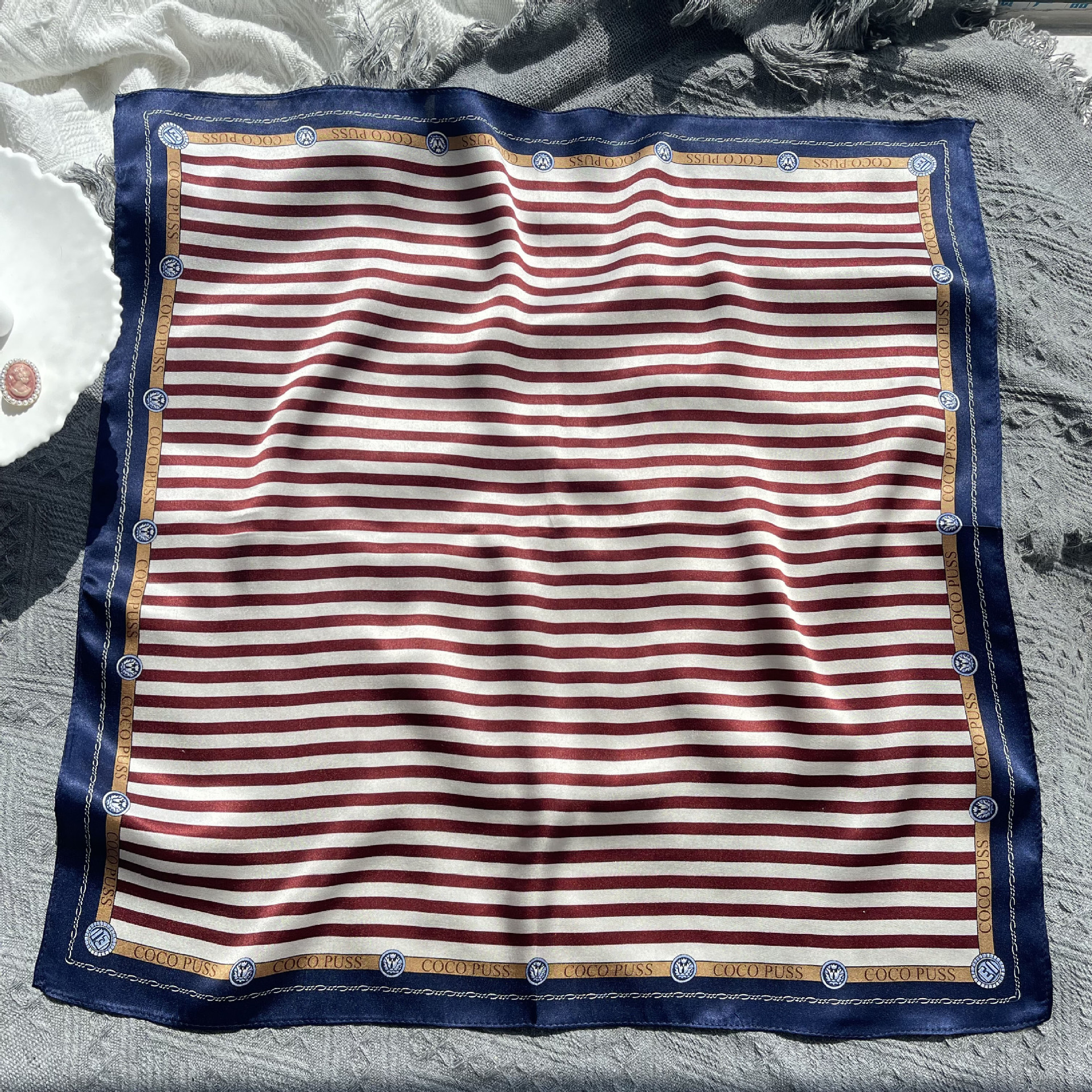 25년 신상 블랙 캐슈 플라워 실크 스카프 여성용 여름 자외선 차단 53cm 스몰 스카프 고급스러운 패션 스카프