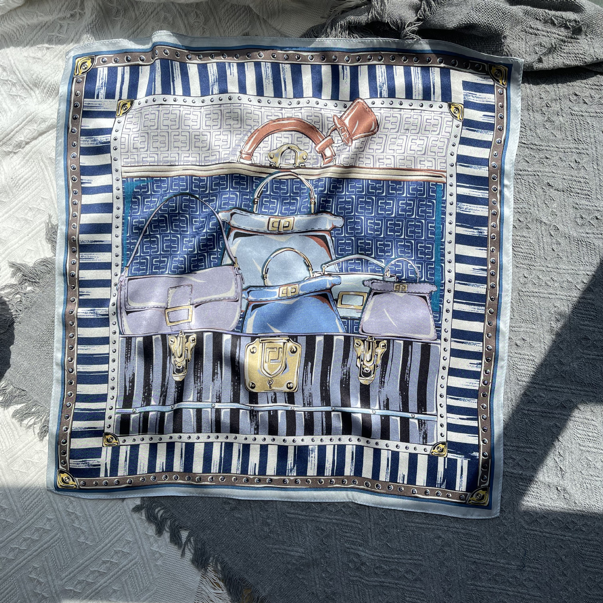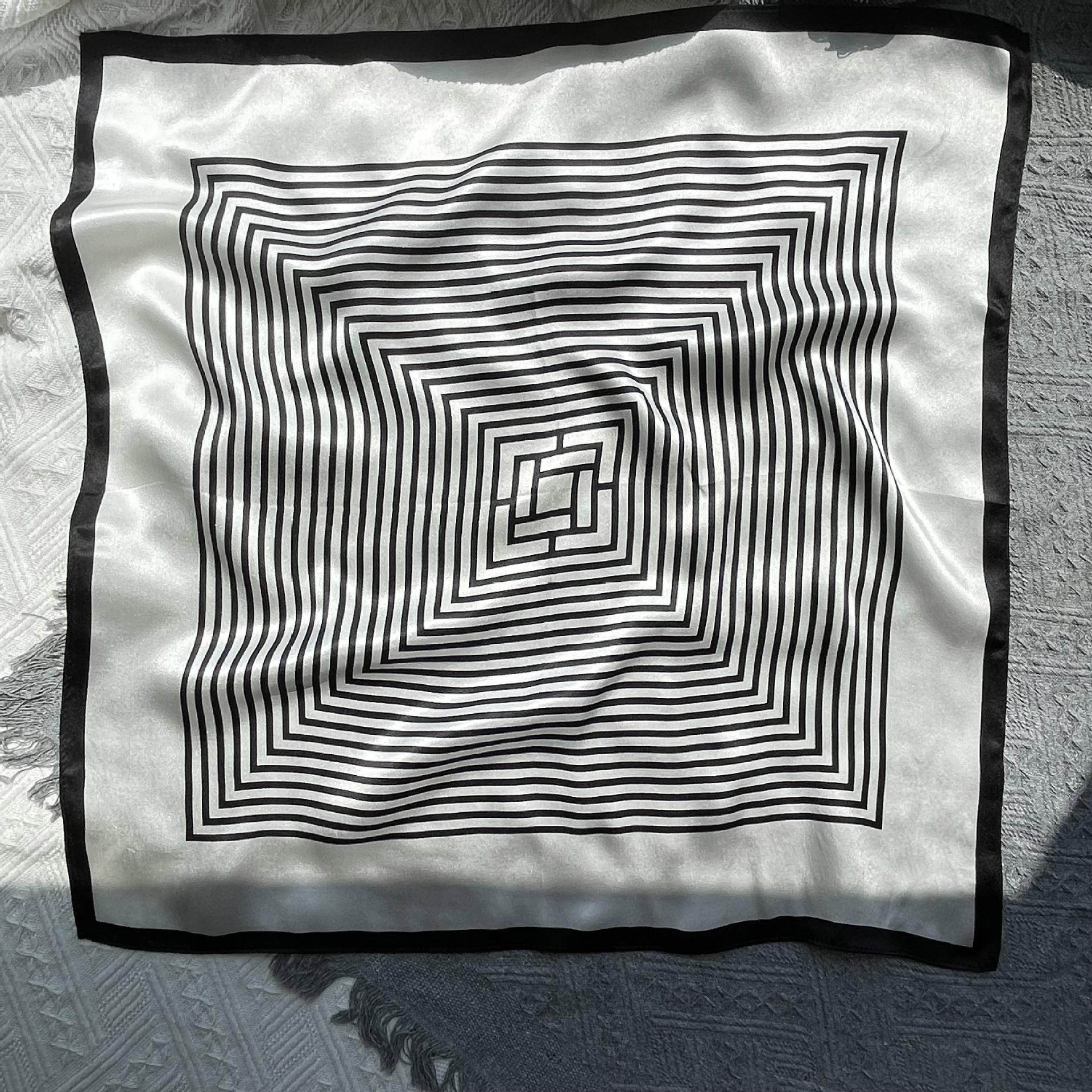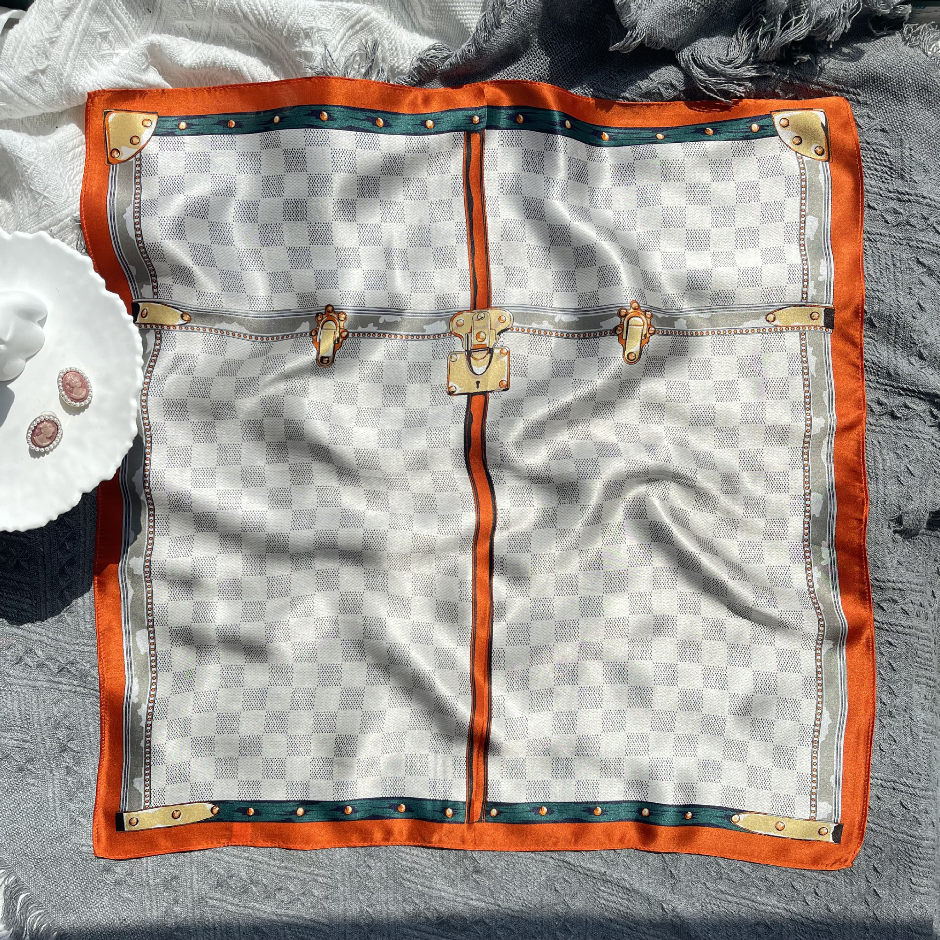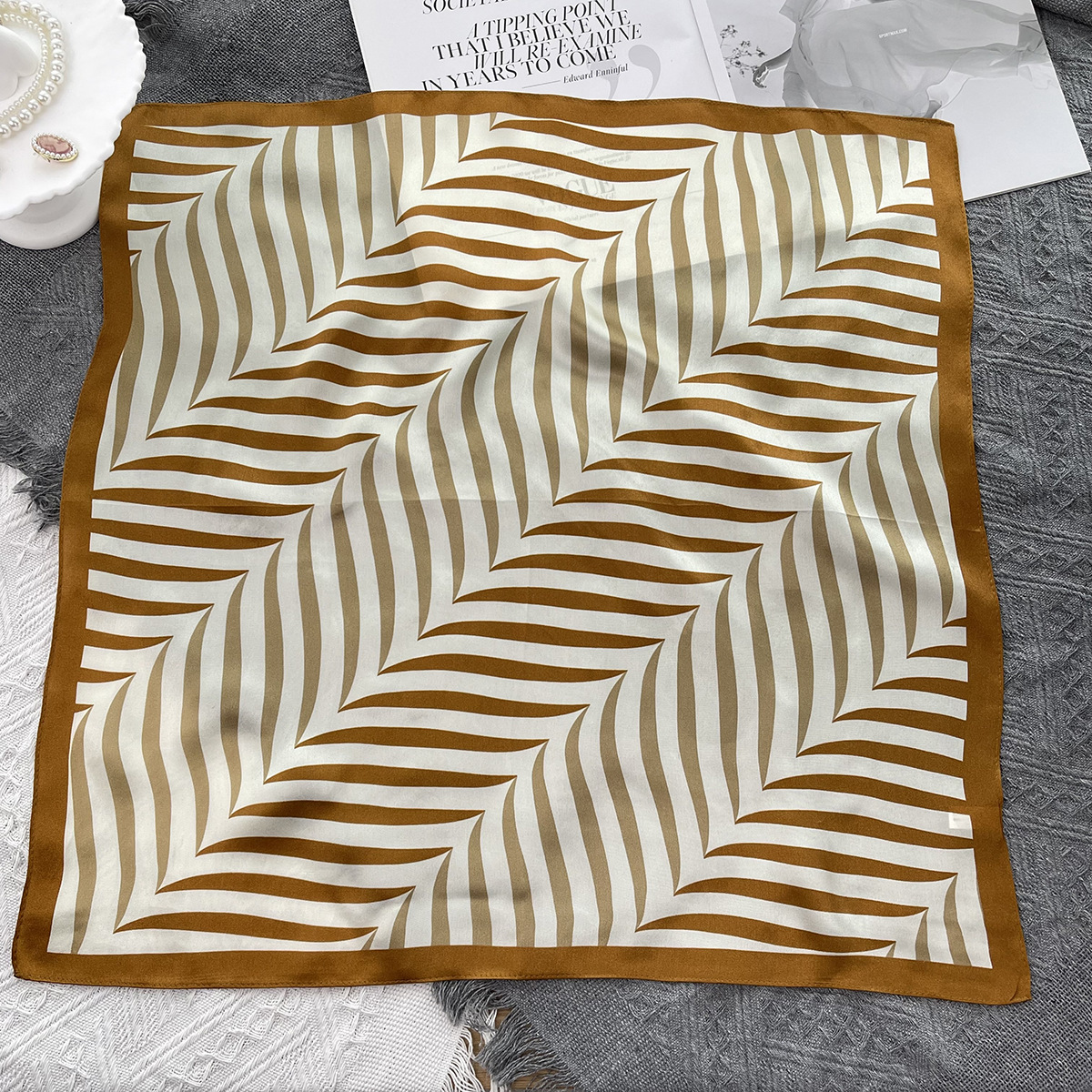 25년 신상 블랙 캐슈 플라워 실크 스카프 여성용 여름 자외선 차단 53cm 스몰 스카프 고급스러운 패션 스카프