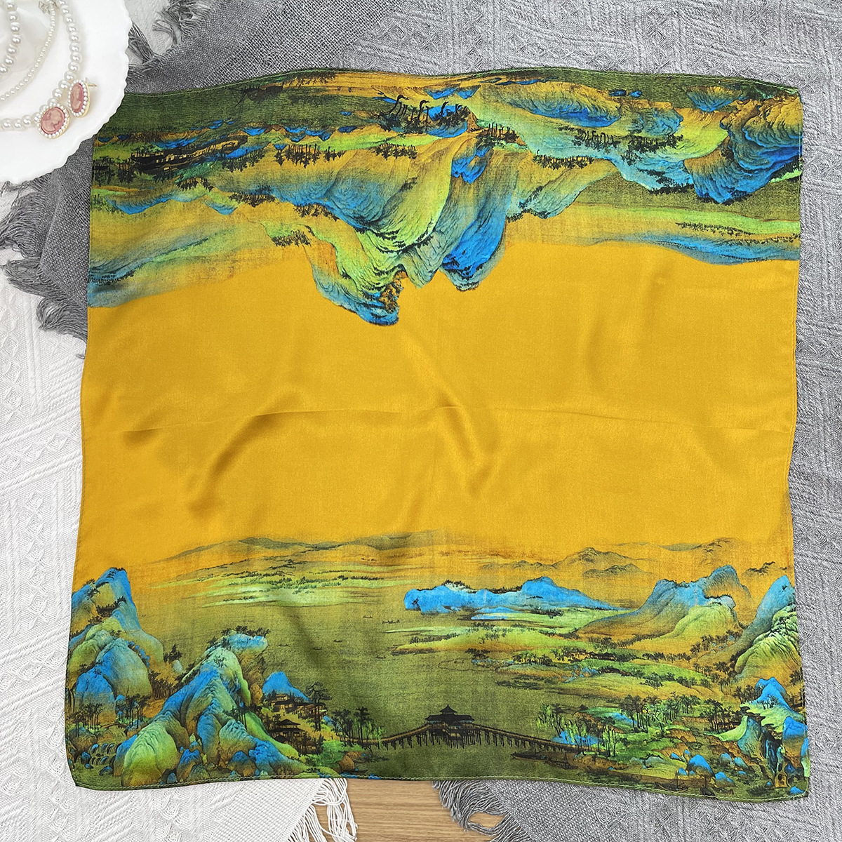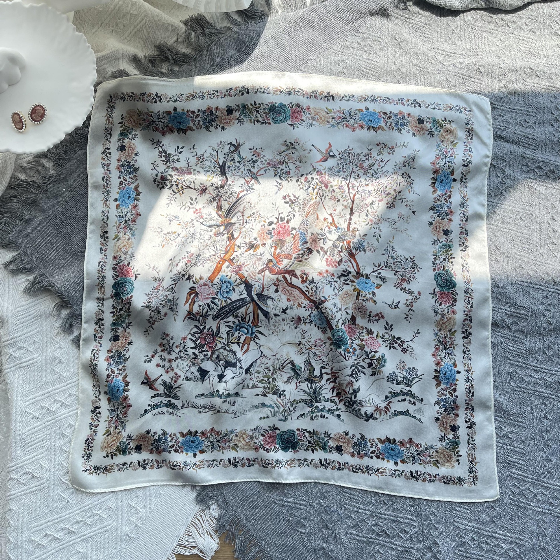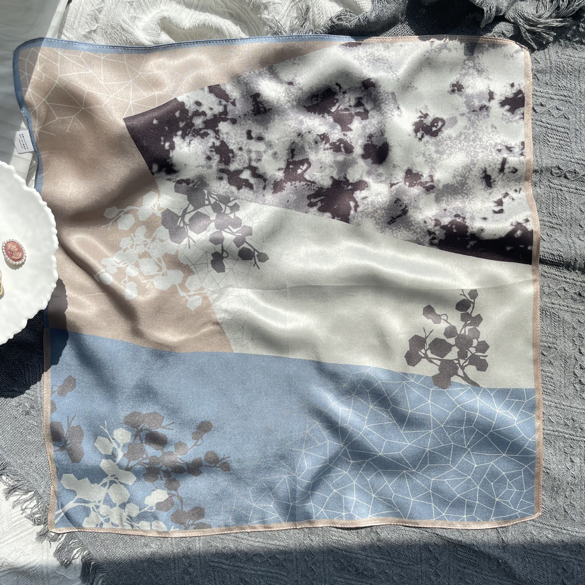 • 캐슈 플라워 멀베리 실크 스카프