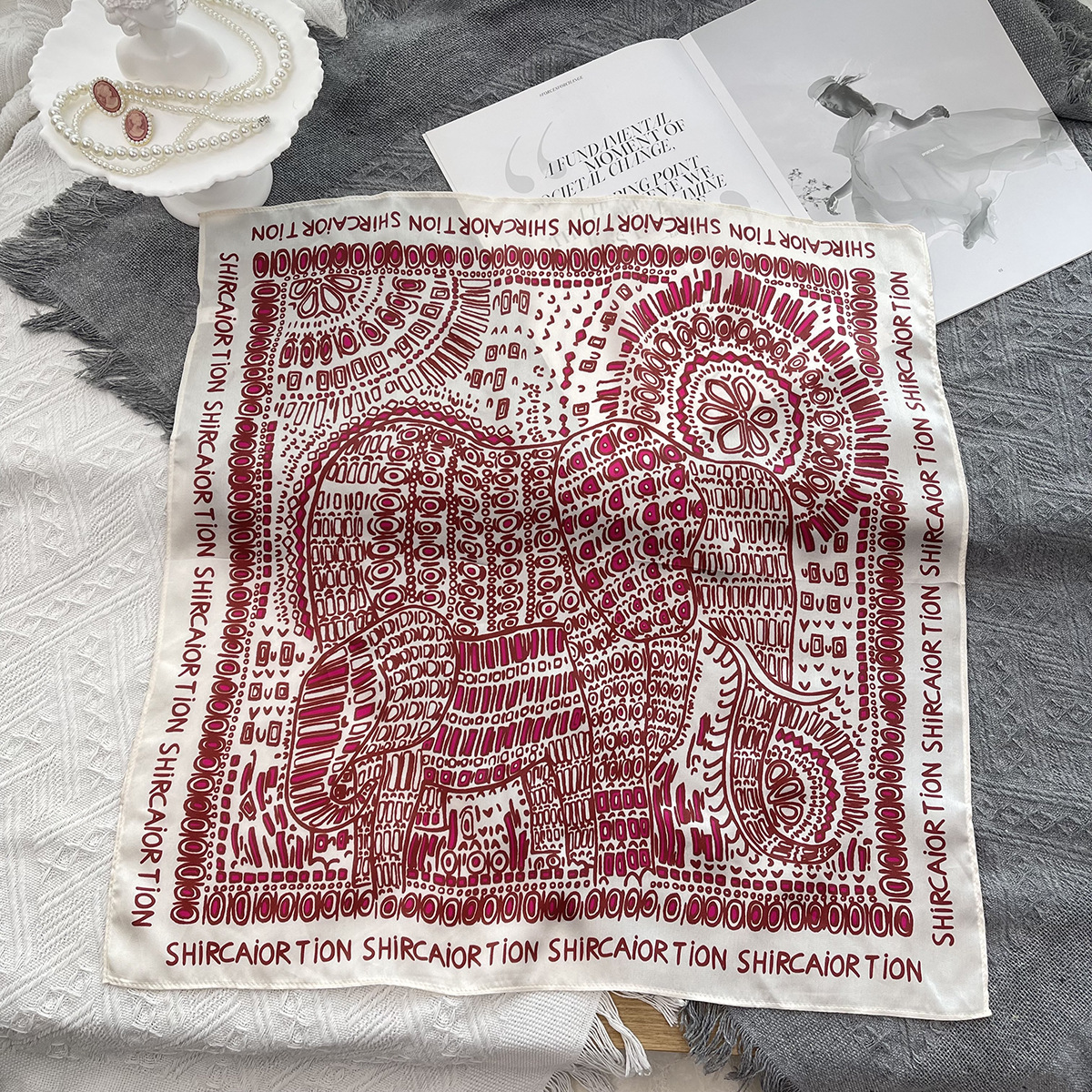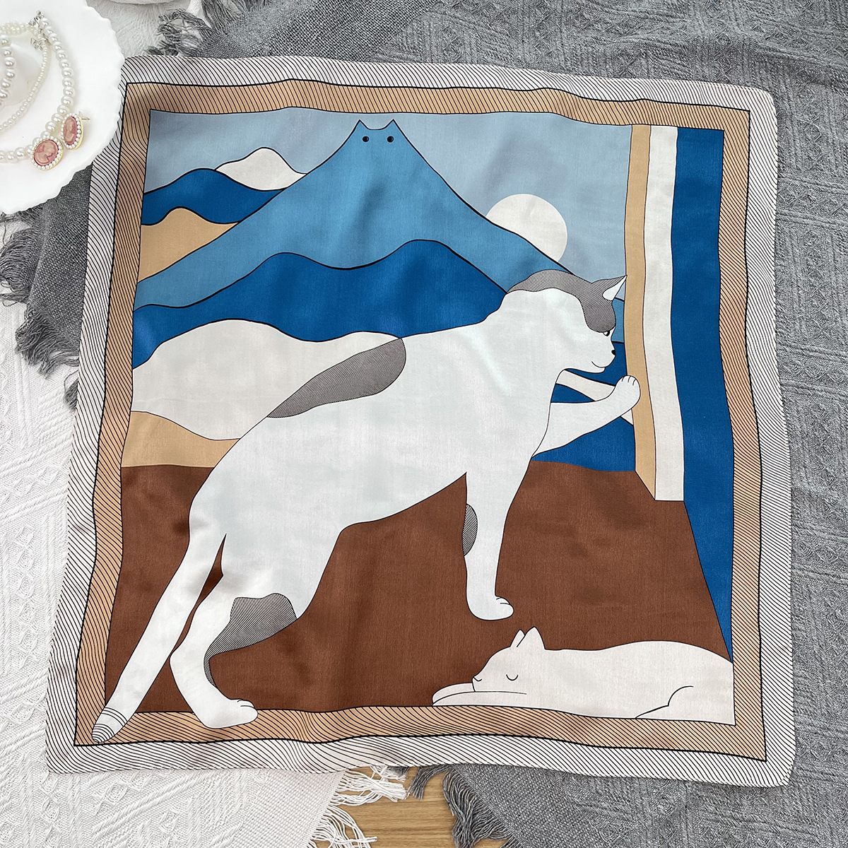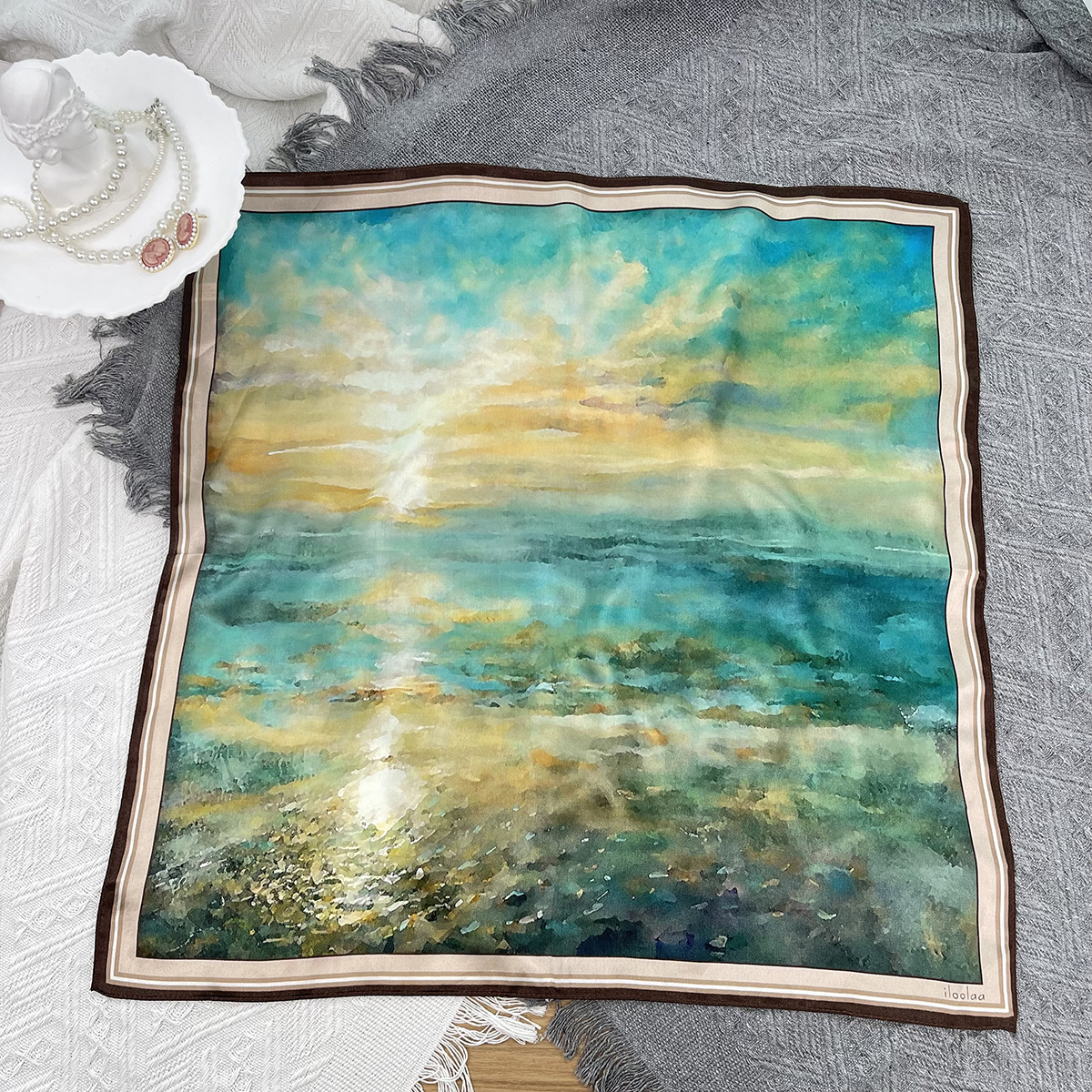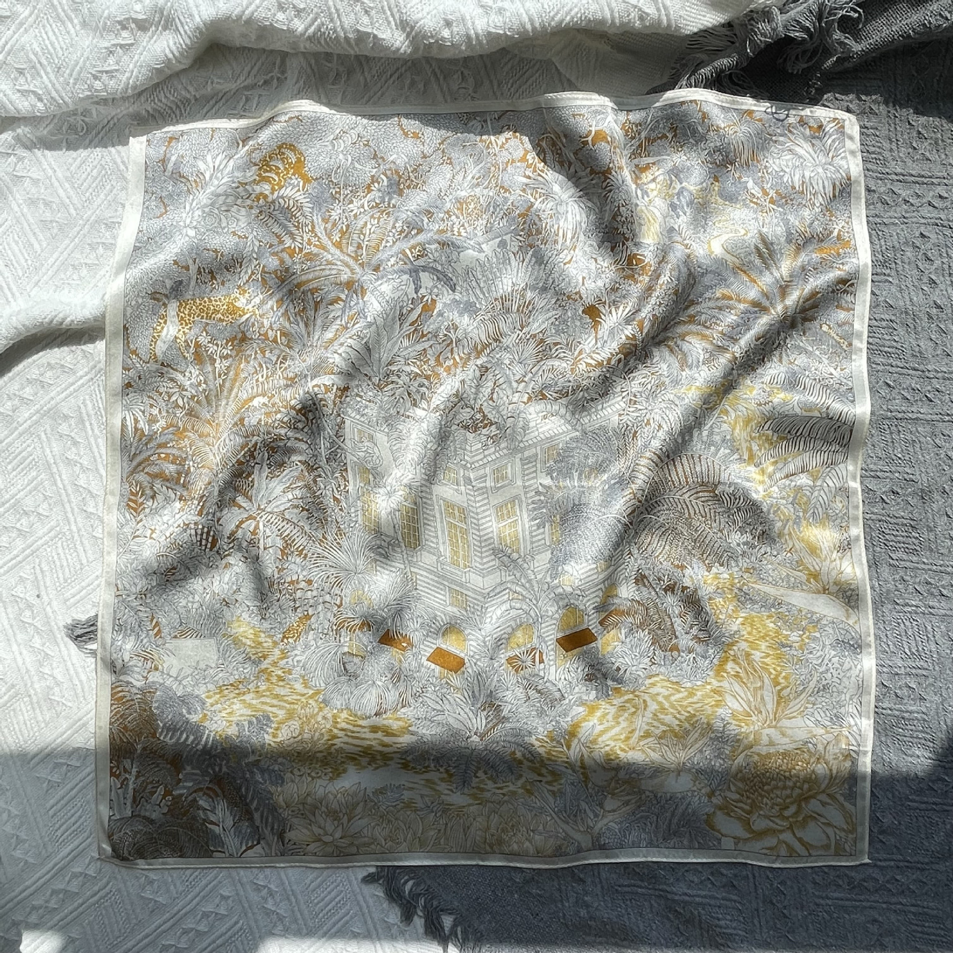 • 캐슈 플라워 멀베리 실크 스카프