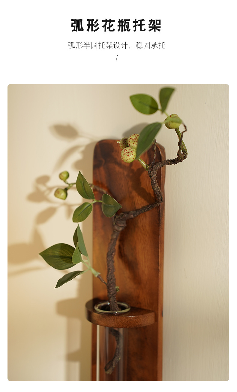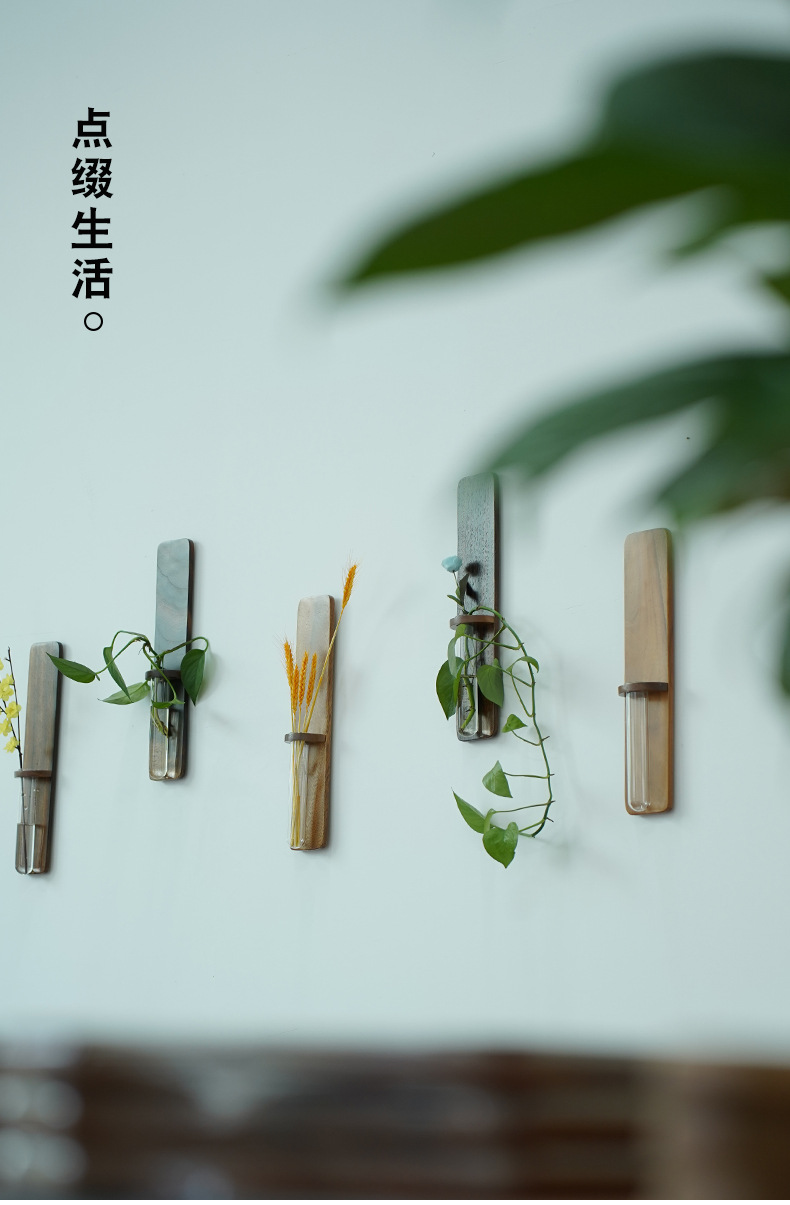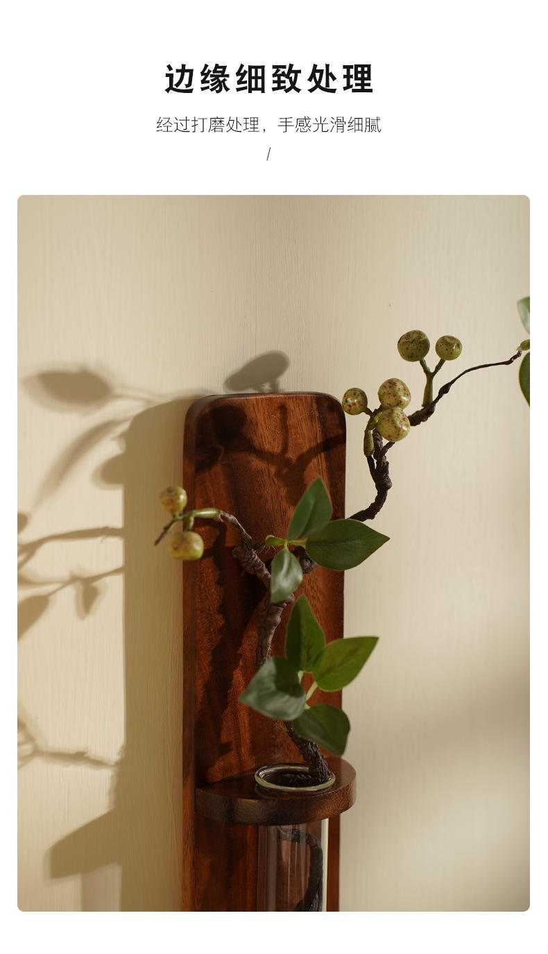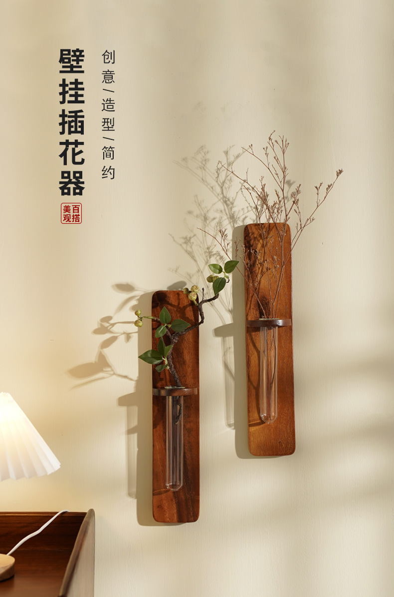 나무 펀치없는 벽 꽃병 물 올리기 꽃 배열 거실 벽 단단한 나무 장식 침실 일본식 꽃 랙