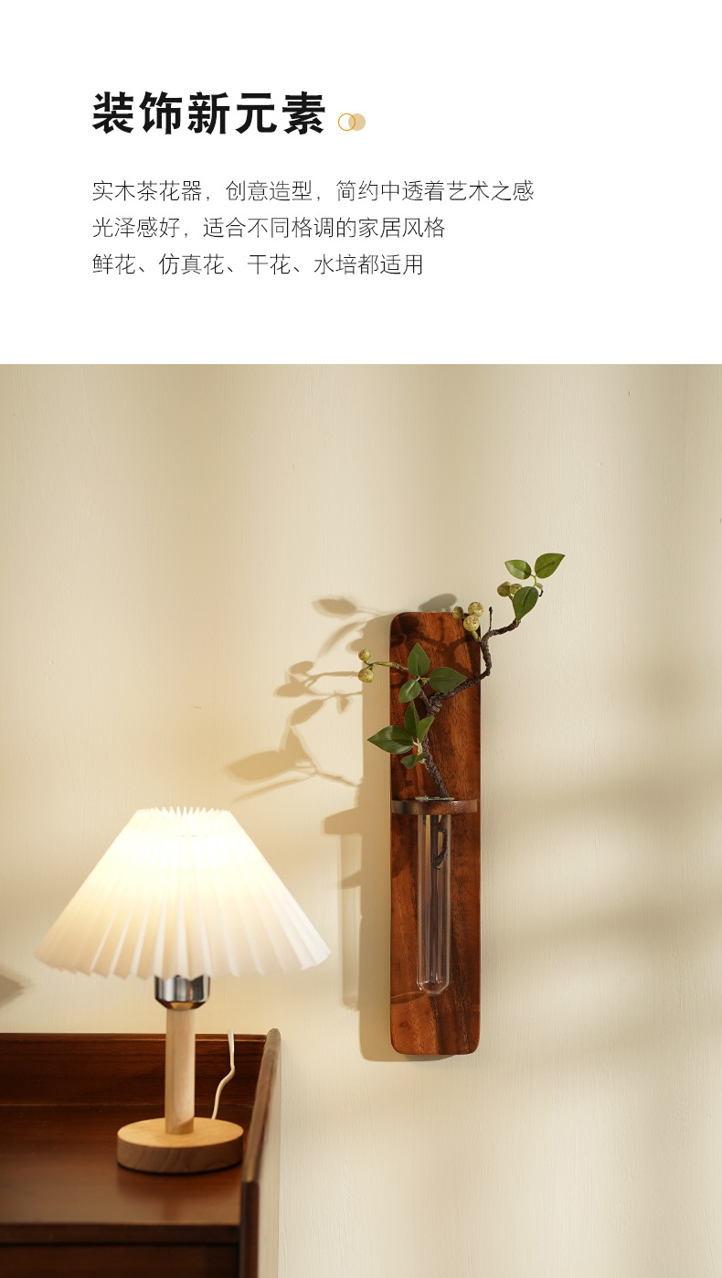 나무 펀치없는 벽 꽃병 물 올리기 꽃 배열 거실 벽 단단한 나무 장식 침실 일본식 꽃 랙스토어 가기