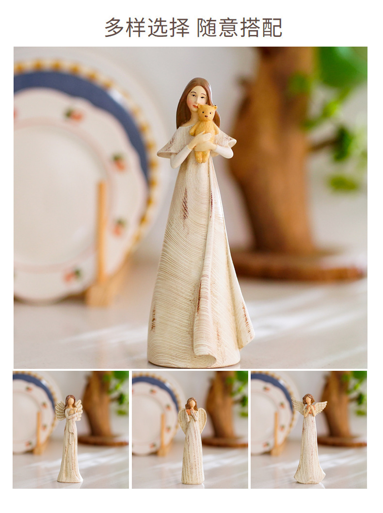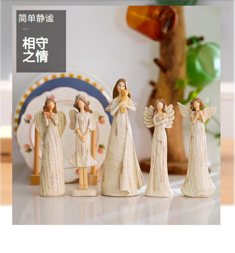국경 간 새로운 복고풍 창조적 인 천사 삽화 데스크탑 현관 홈 액세서리 수지 수제 동상 장식품스토어 가기