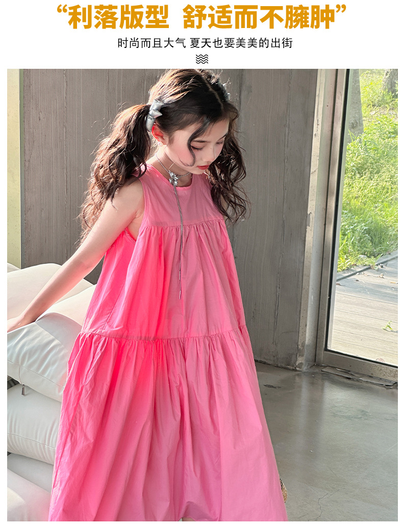 소녀 스타일 여름 원피스 2024 새로운 소녀 큰 아이 민소매 코튼 공주 원피스 여름 패션