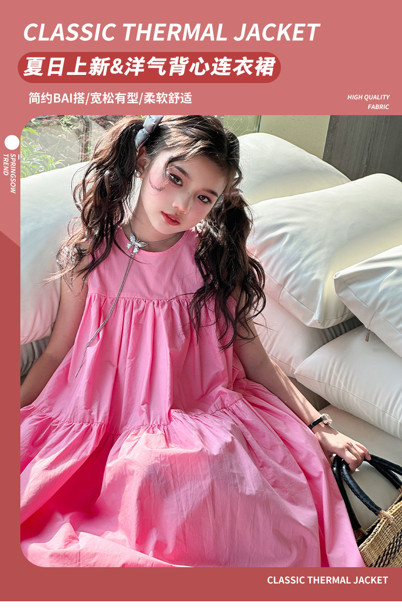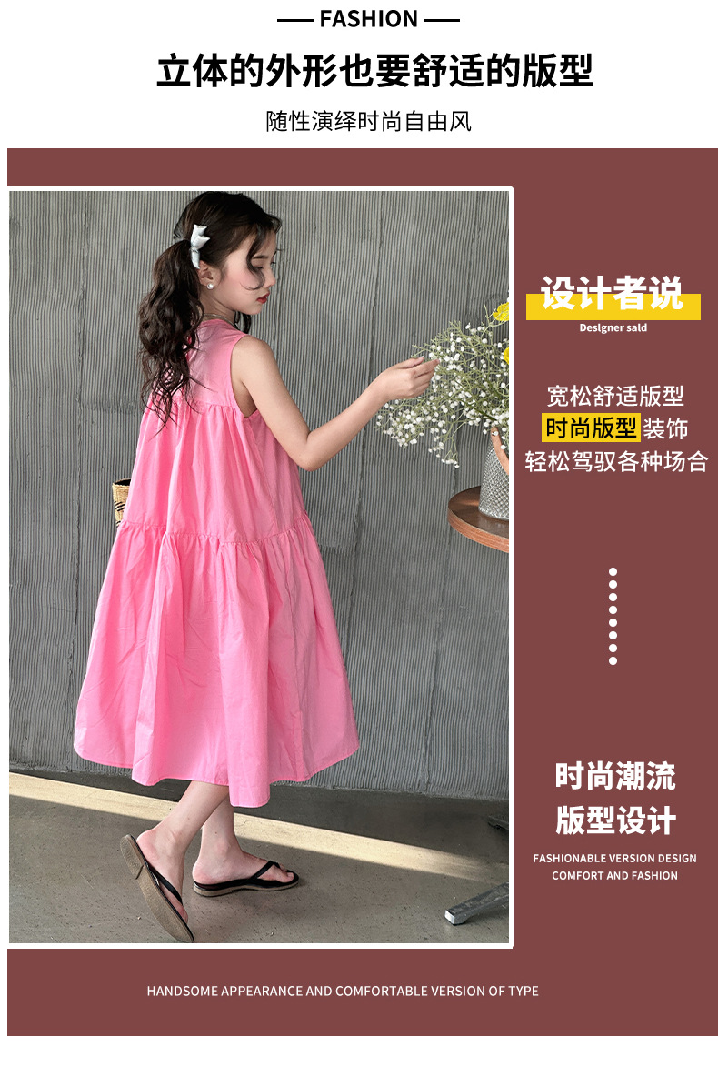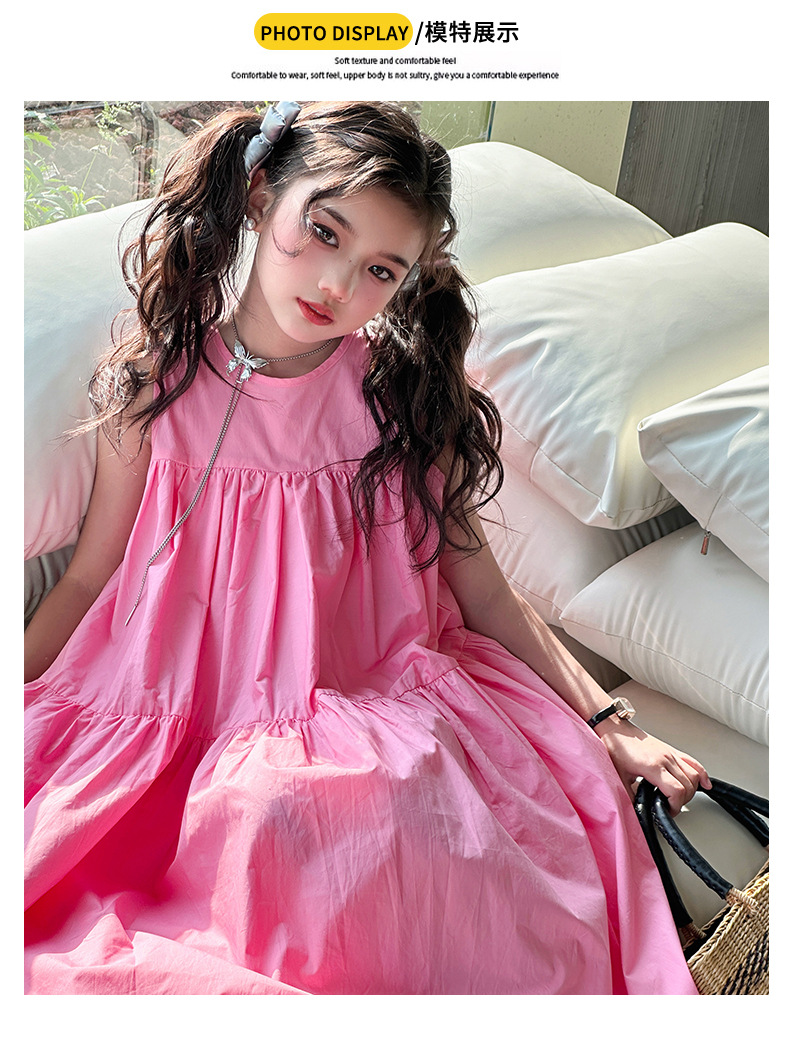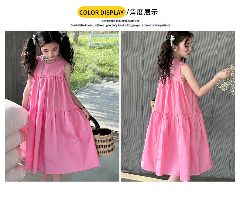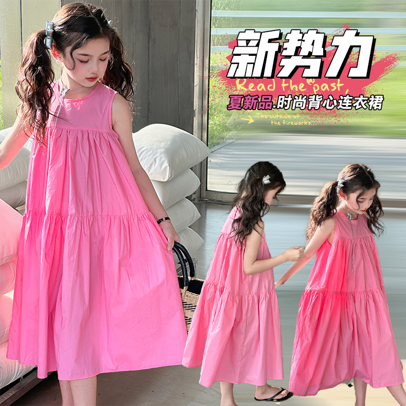 소녀 스타일 여름 원피스 2024 새로운 소녀 큰 아이 민소매 코튼 공주 원피스 여름 패션스토어 가기
