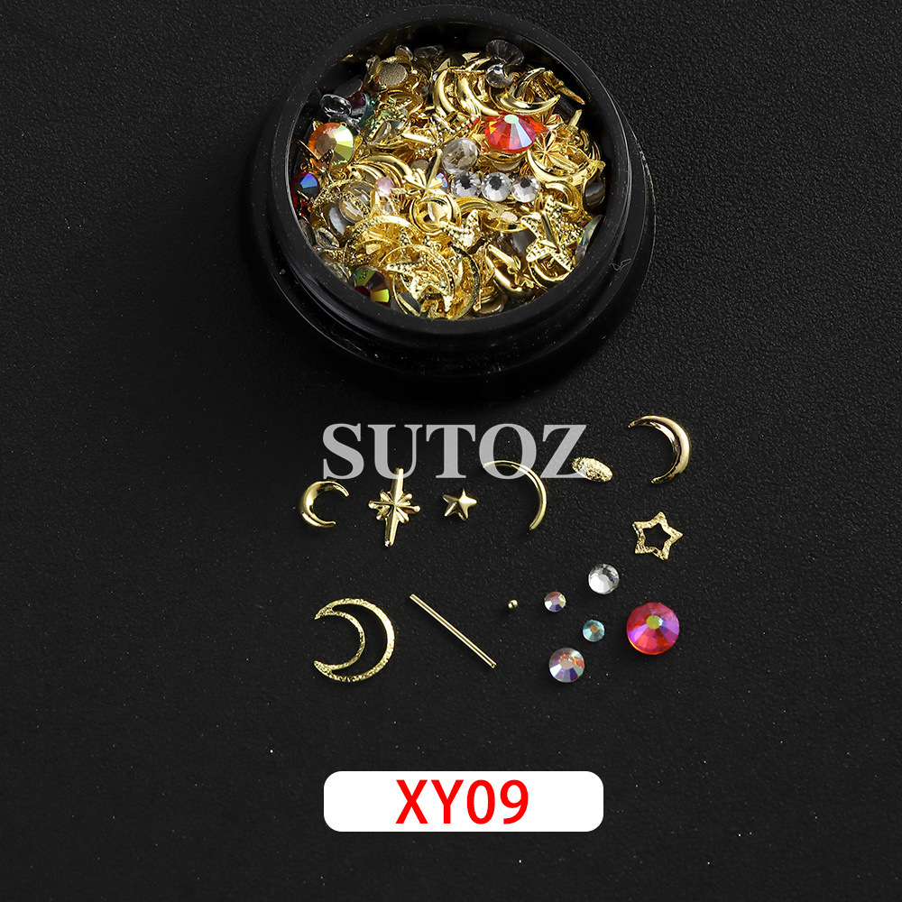 국경 간 핫 네일 쥬얼리 일본 스타 문 플랫 바닥 다이아몬드 금속 리벳 혼합 네일 DIY 장식 액세서리