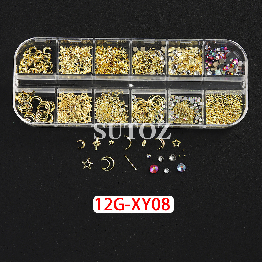 국경 간 핫 네일 쥬얼리 일본 스타 문 플랫 바닥 다이아몬드 금속 리벳 혼합 네일 DIY 장식 액세서리스토어 가기