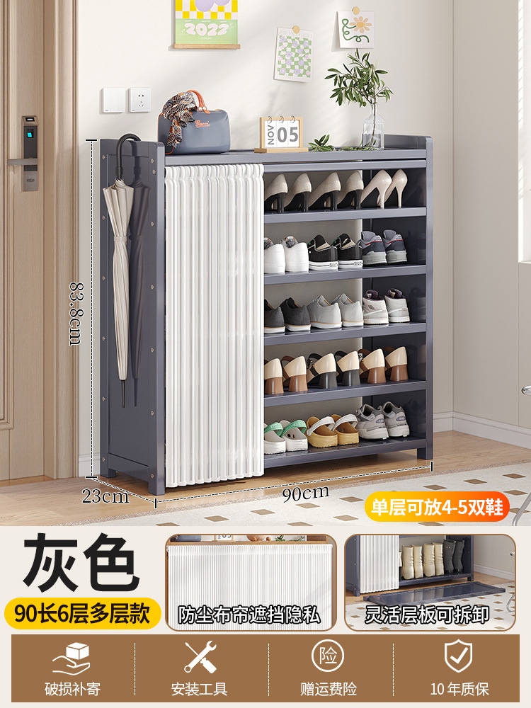 • 회색 90 긴 6 층 다층 신발 랙 [달 흰색 거즈 커튼]]