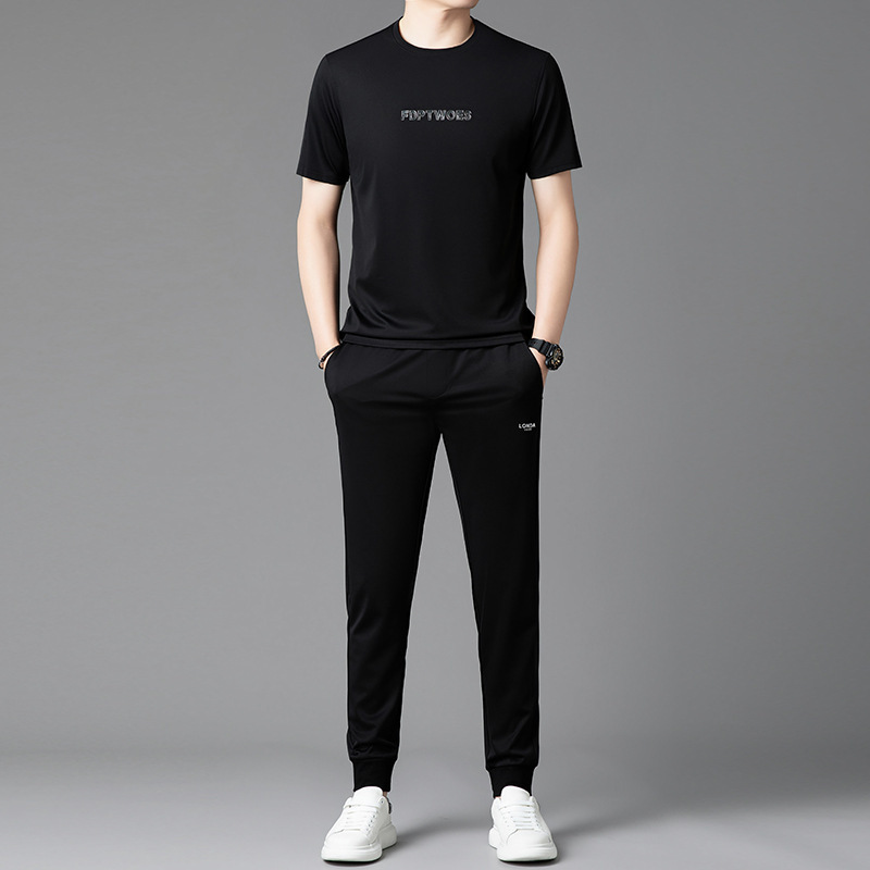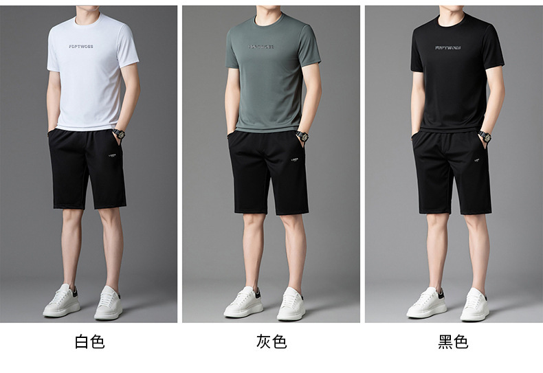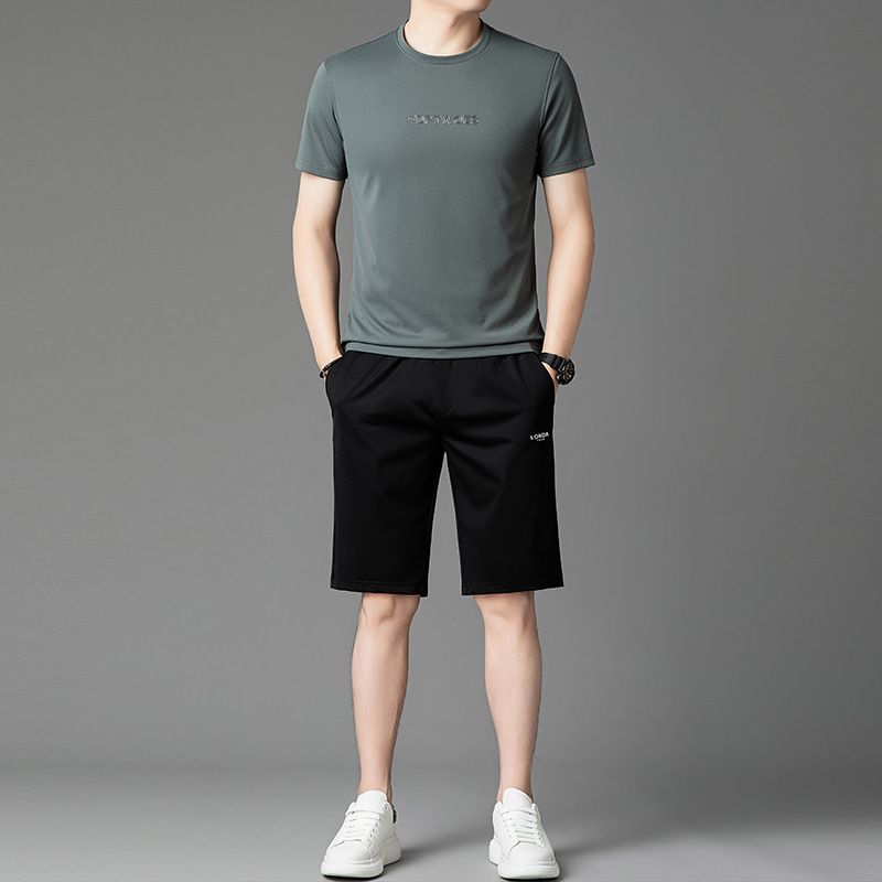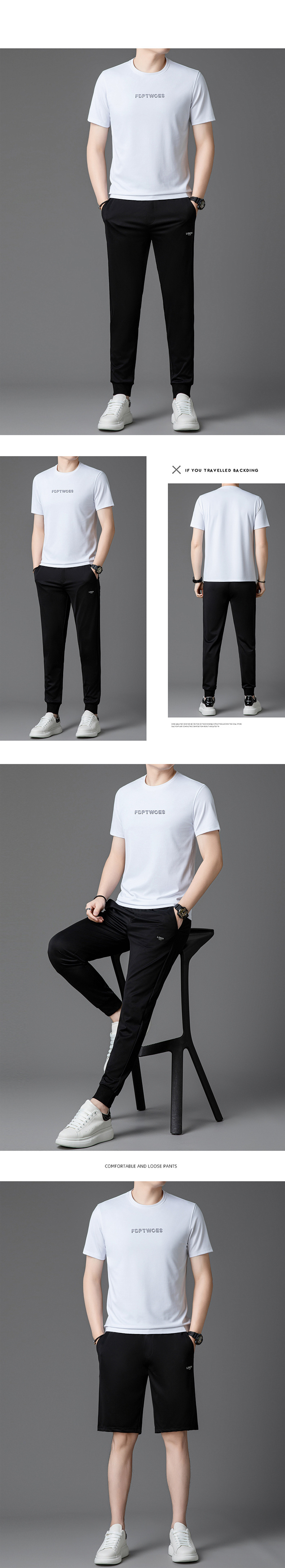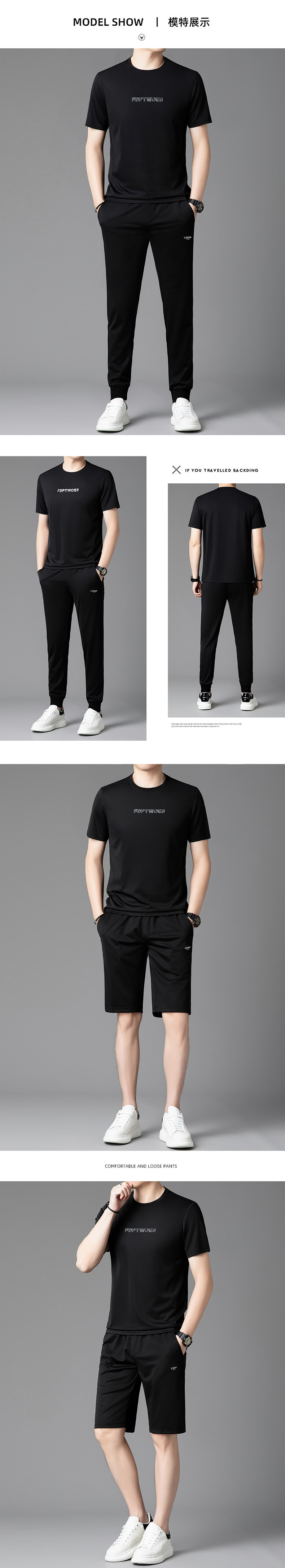 여름 뉴 세트 남녀 라운드 넥 반팔 탑 패셔너블 캐주얼 스포츠 투피스 세트