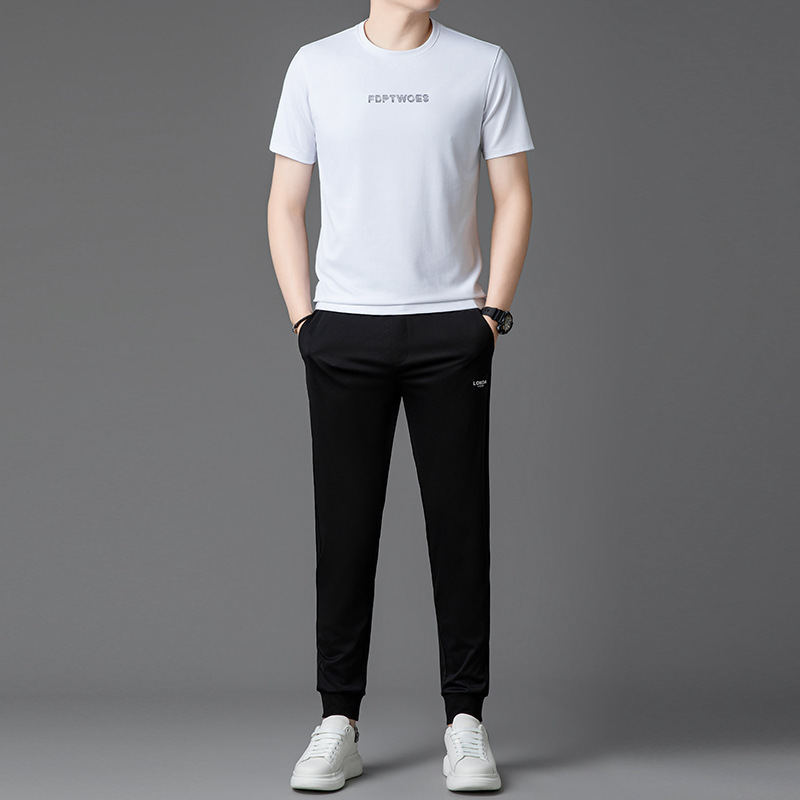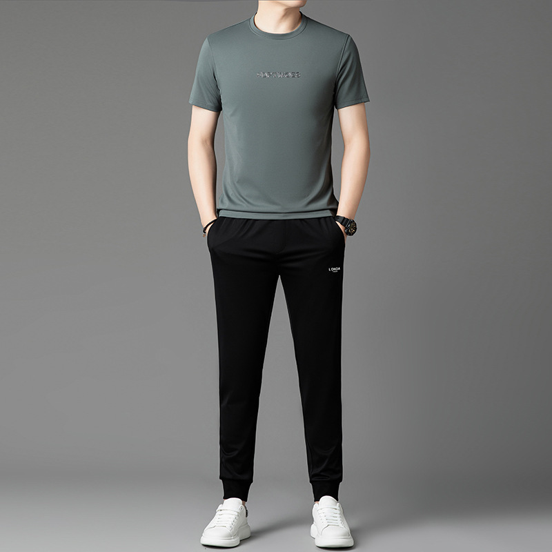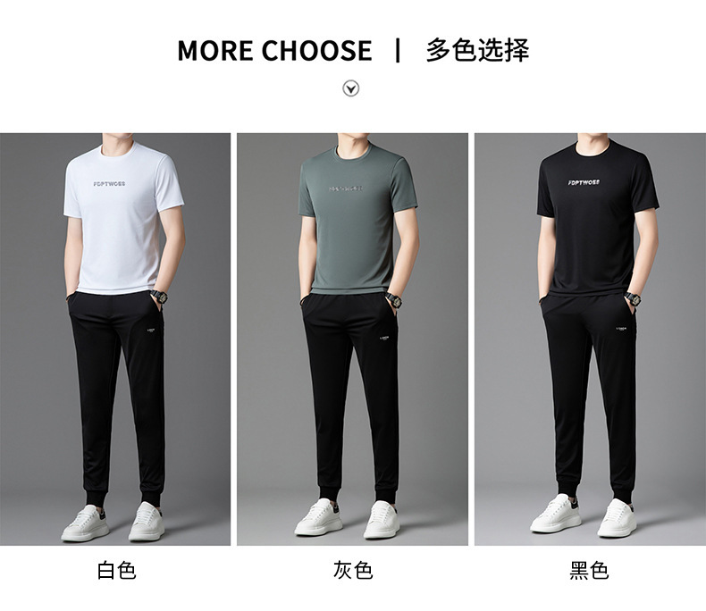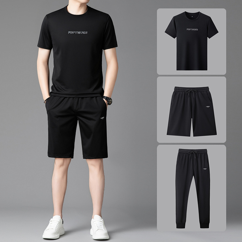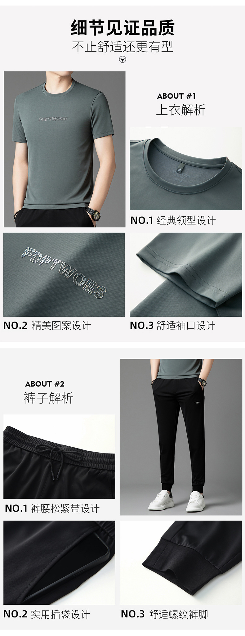여름 뉴 세트 남녀 라운드 넥 반팔 탑 패셔너블 캐주얼 스포츠 투피스 세트