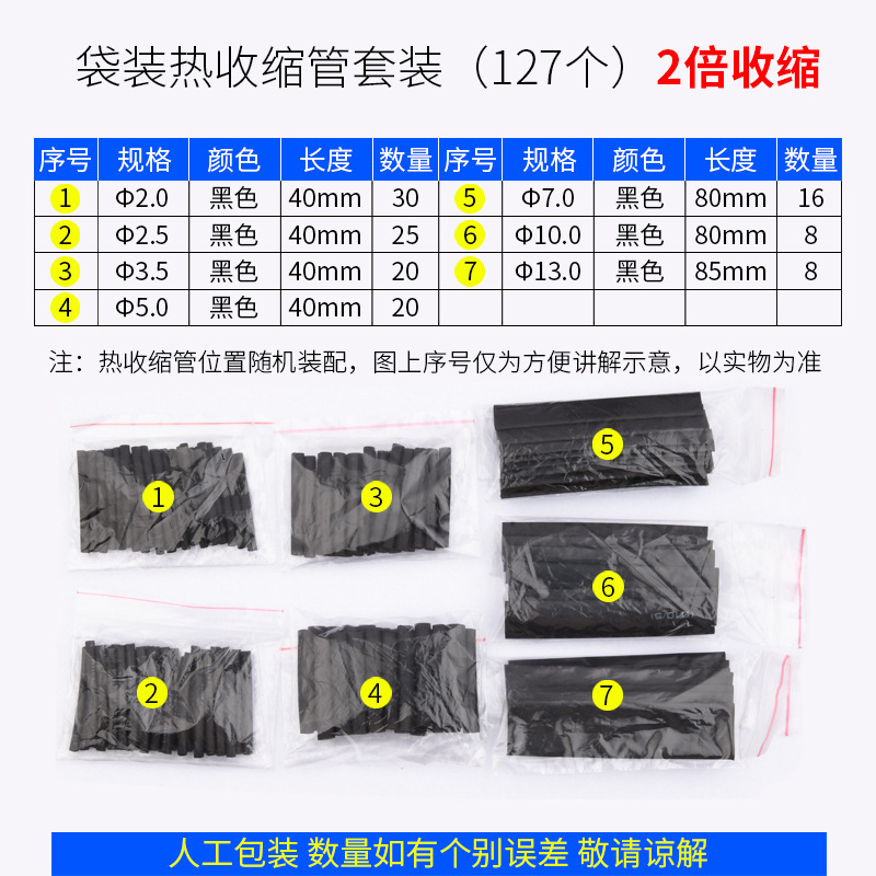 • 127개 블랙 세트 [2배 수축] (가방에 포장)