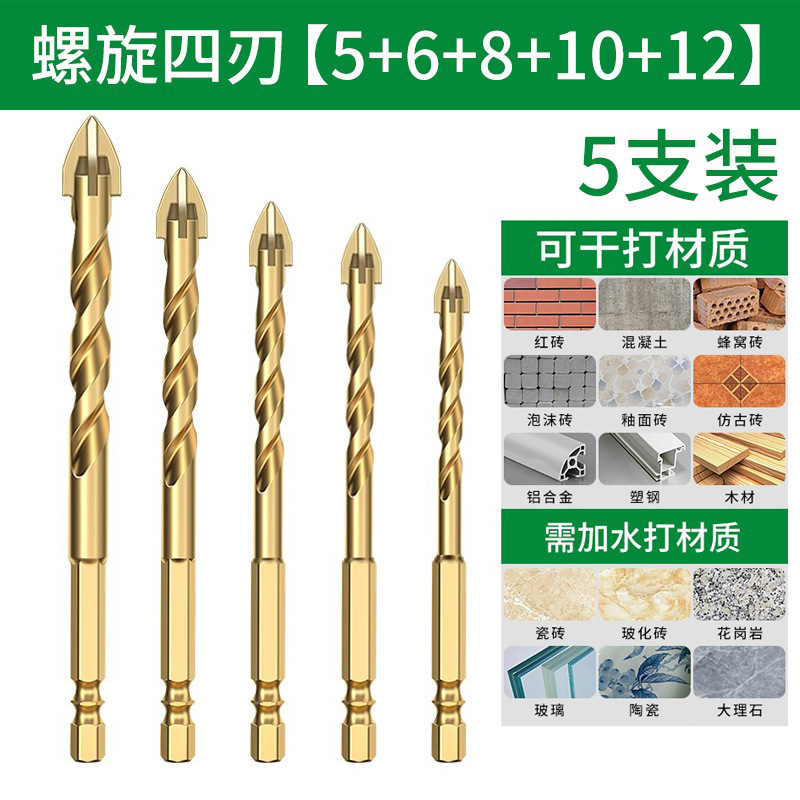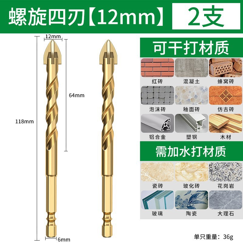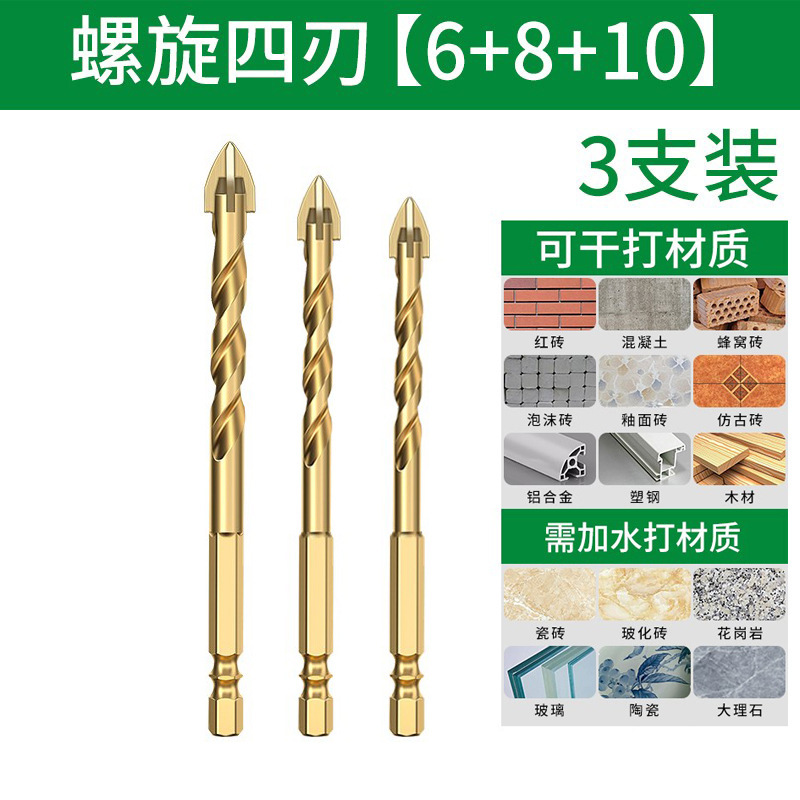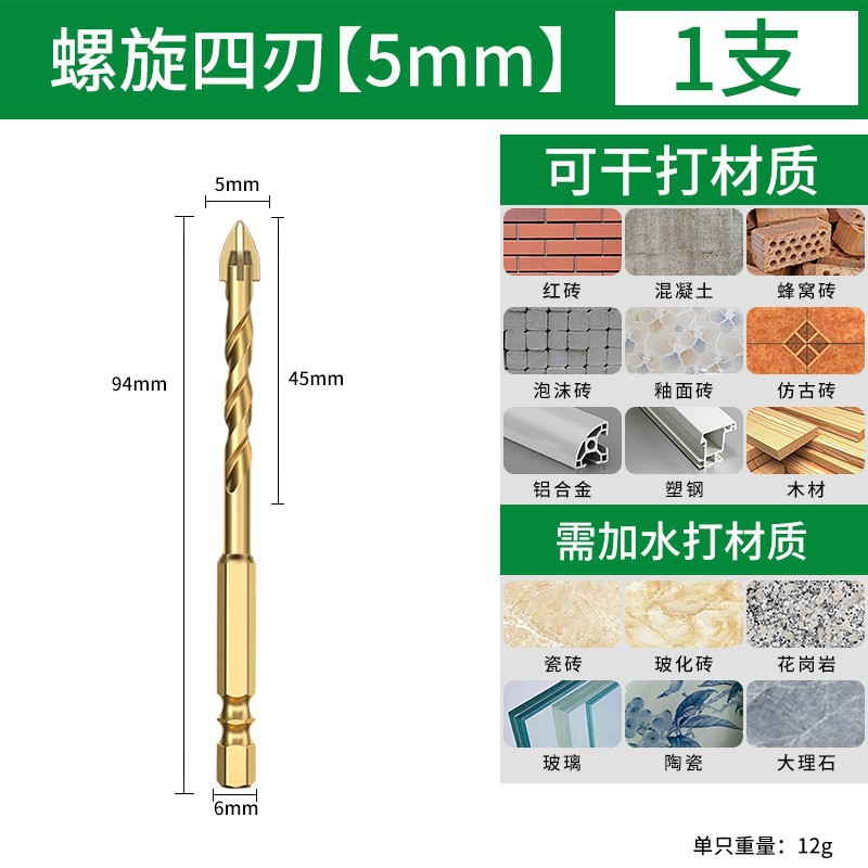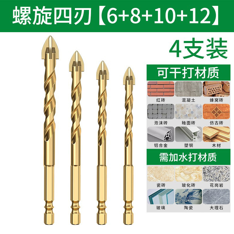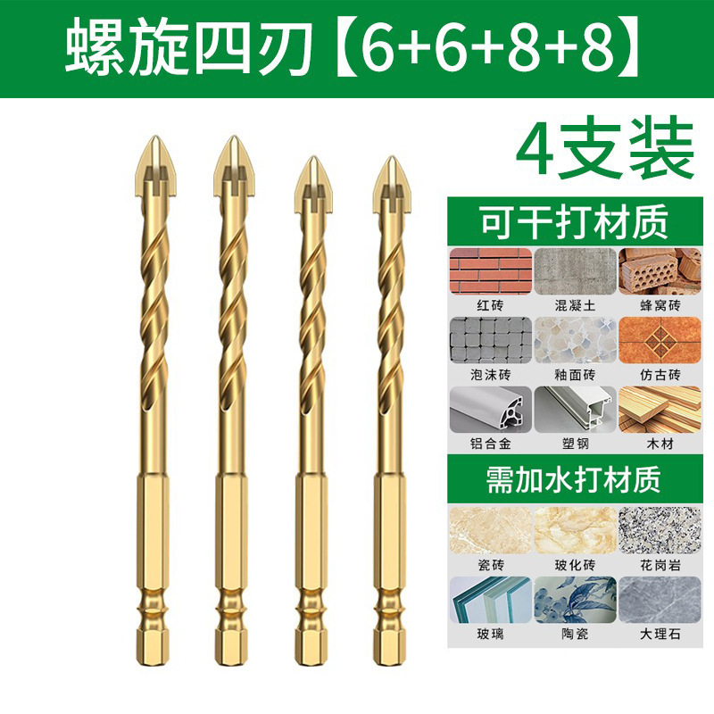 다기능 트위스트 타일 드릴 트라이앵글 드릴 오버로드 육각형 핸들 4 블레이드 콘크리트 유리 특수 턴어라운드스토어 가기