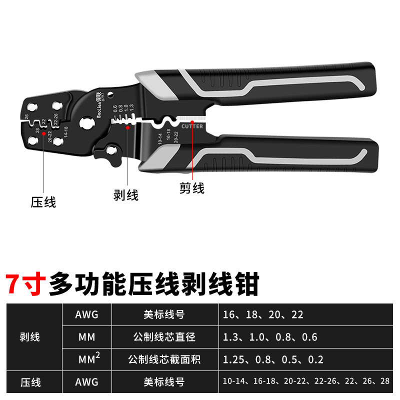 • 다기능 와이어 스트리핑 및 압착 펜치 7inch