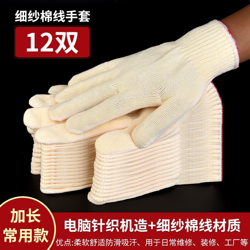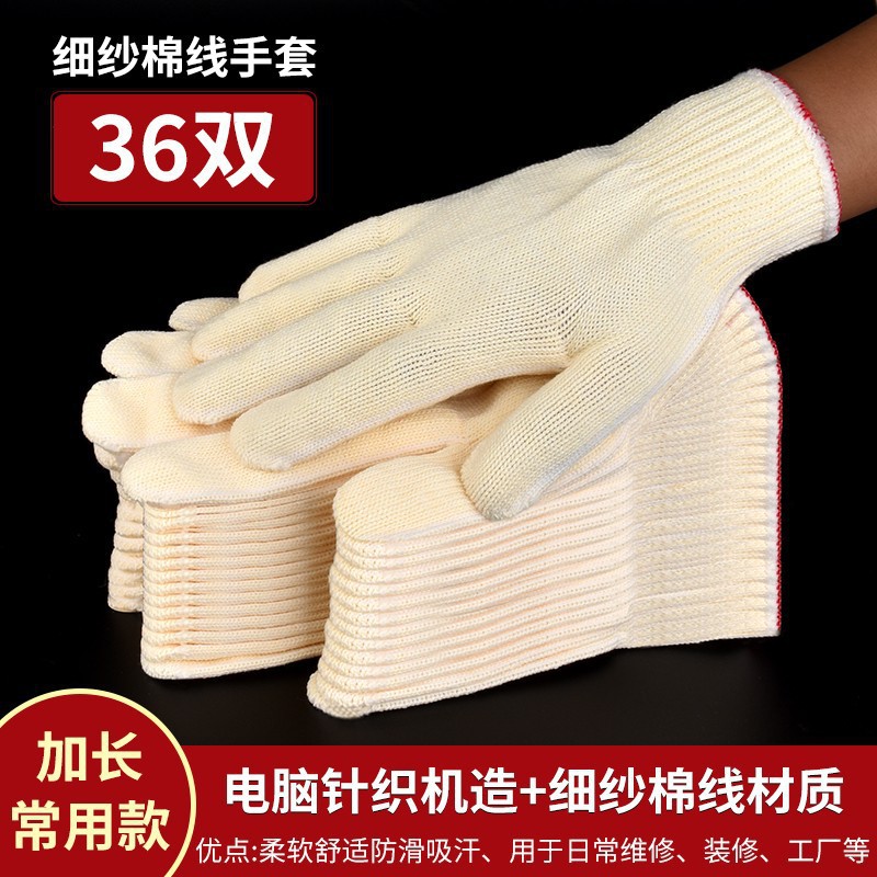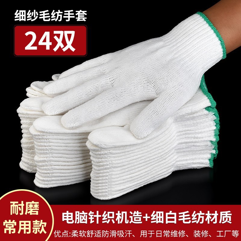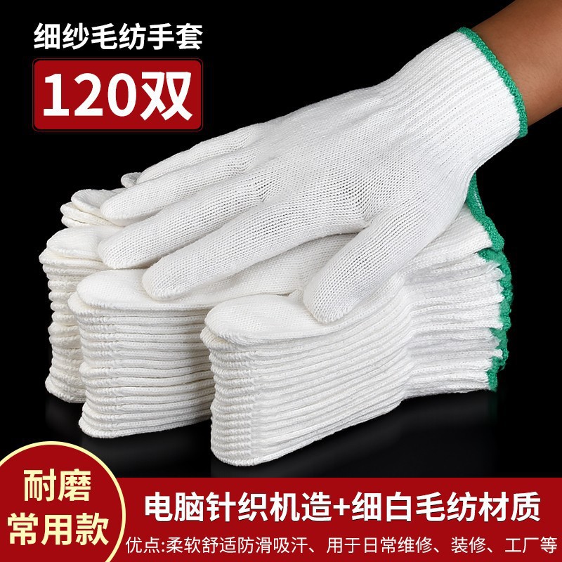 장갑 노동 보호 내마모성 작업 통기성 두꺼운 얇은 흰색 면 원사 나일론 노동 노동자 남성 작업 사이트스토어 가기