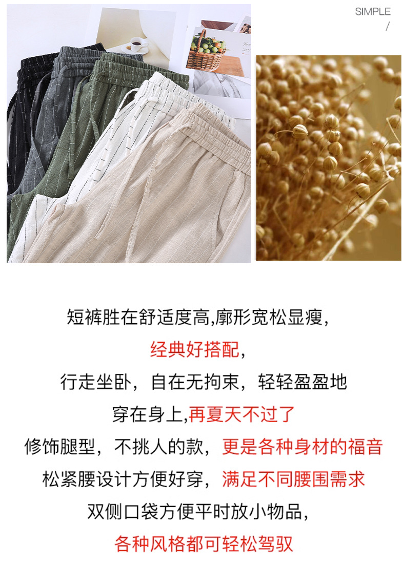 3035 일본 라미 반바지 남자 청소년 플러스 사이즈 느슨한 레트로 린넨 면화 바지 스포츠 비치 바지 얇은스토어 가기