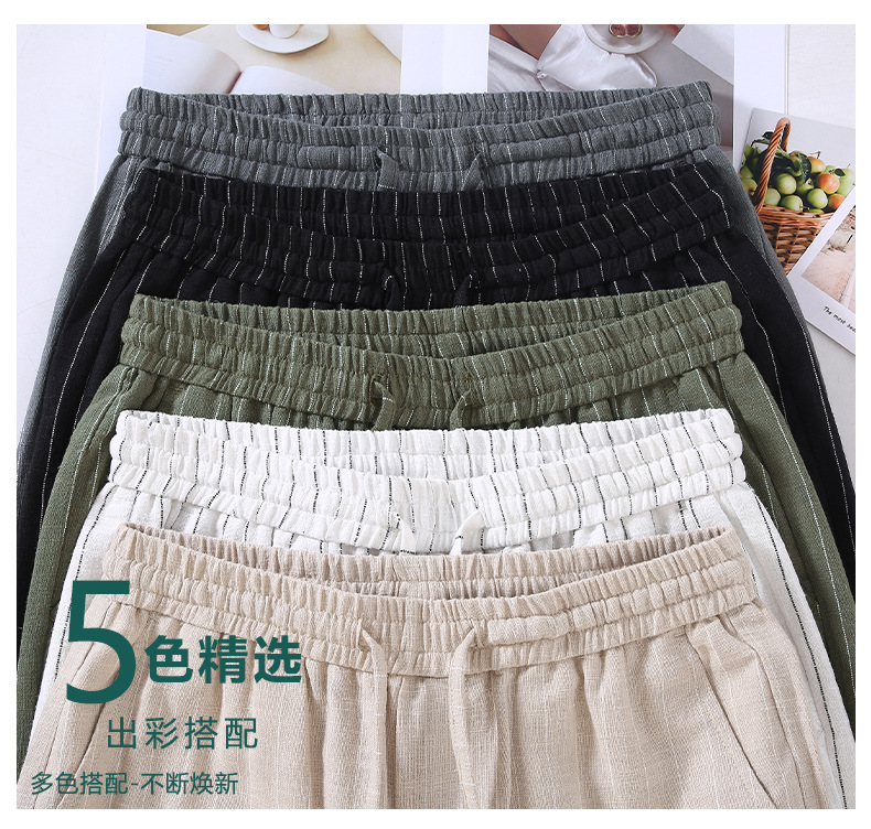 3035 일본 라미 반바지 남자 청소년 플러스 사이즈 느슨한 레트로 린넨 면화 바지 스포츠 비치 바지 얇은