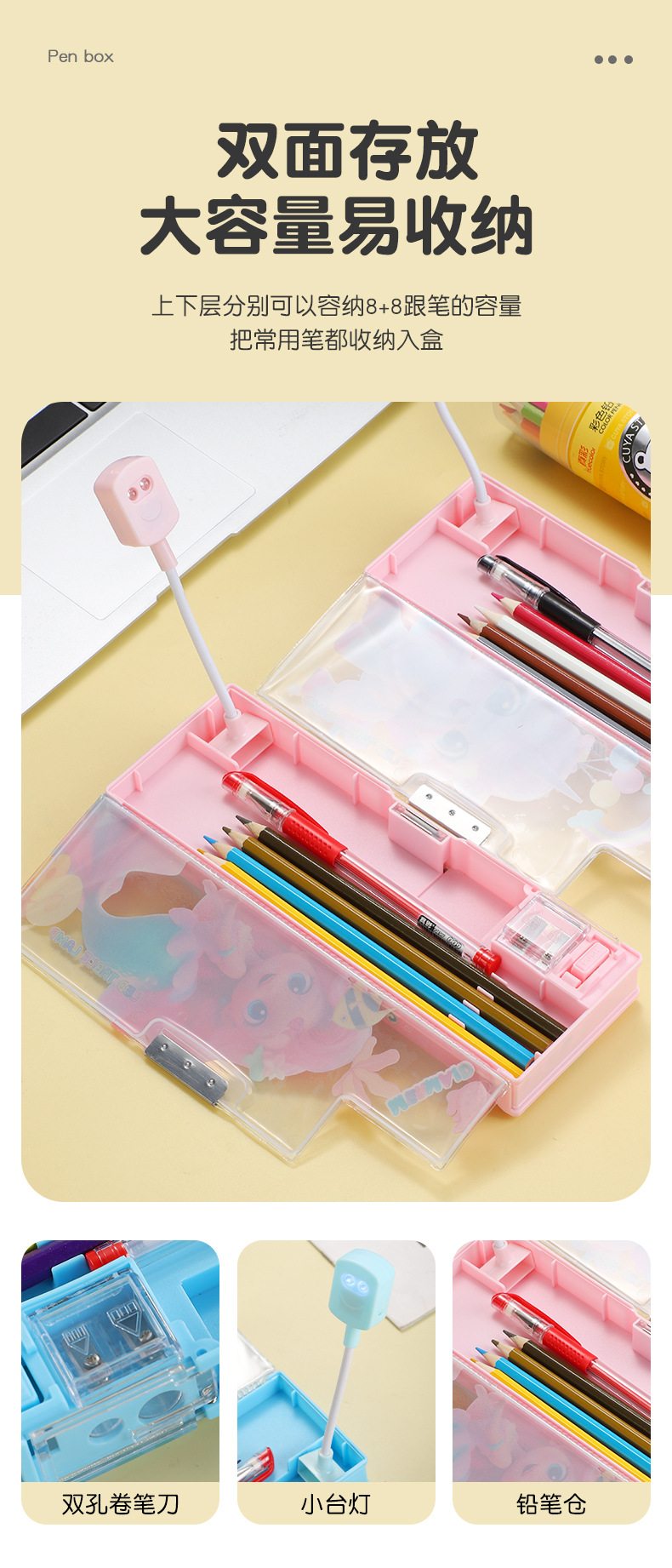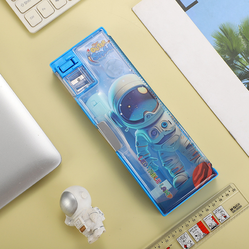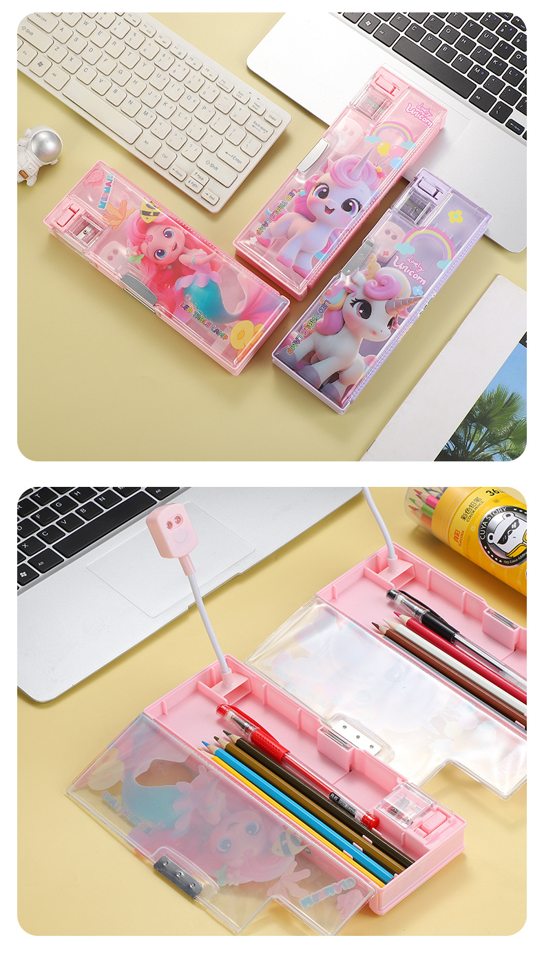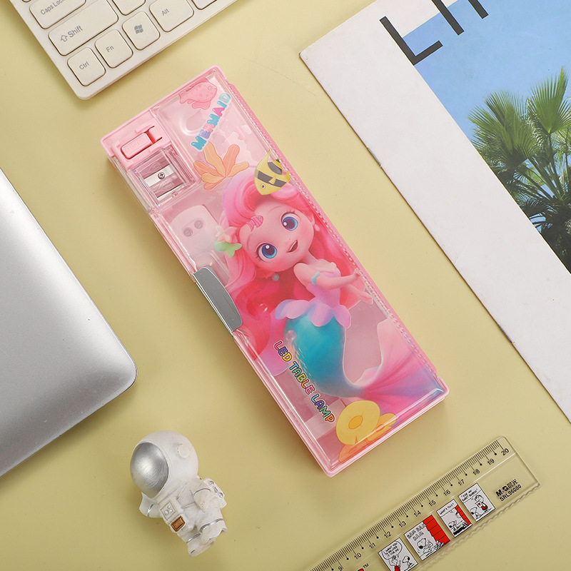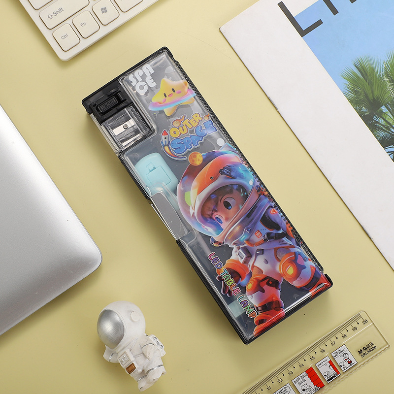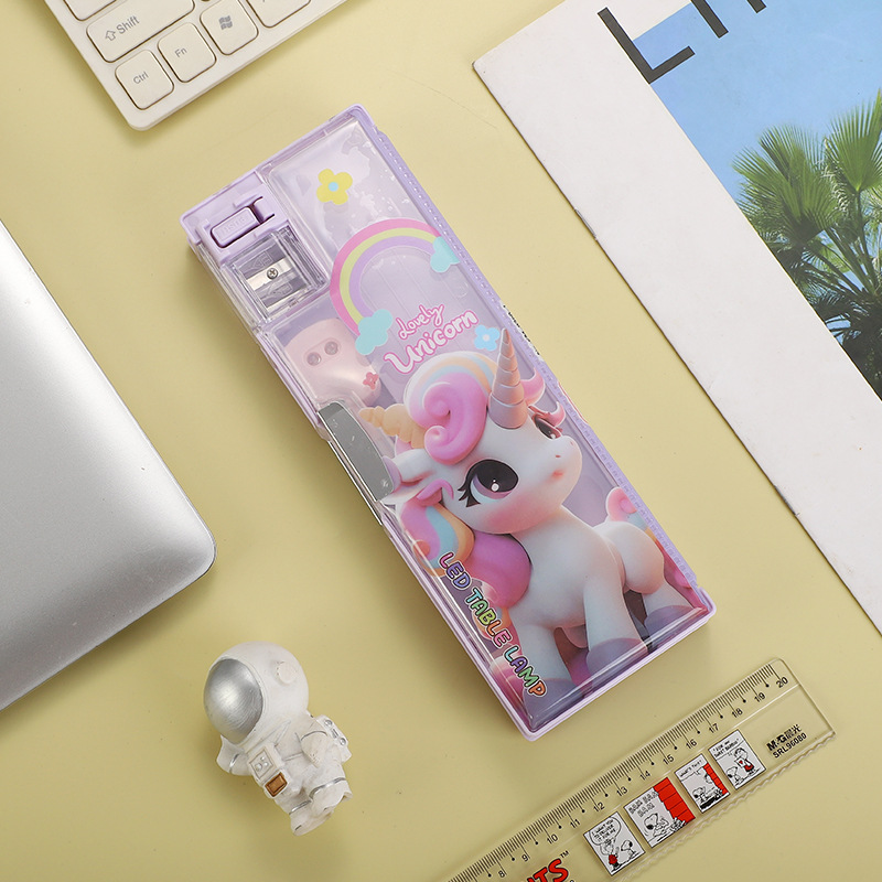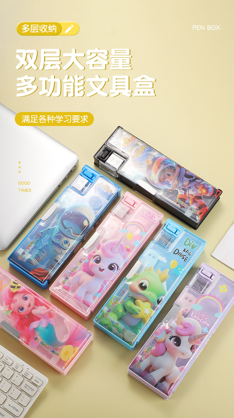 새로운 이중 목적 문구 상자 책상 램프 대용량 다층 연필 케이스 창조적 인 만화 귀여운 재미있는 학생 문구 연필 케이스