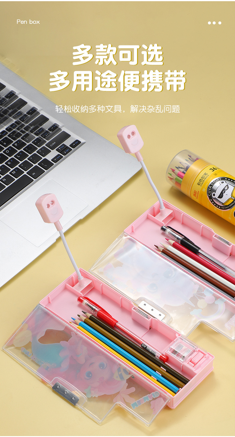 새로운 이중 목적 문구 상자 책상 램프 대용량 다층 연필 케이스 창조적 인 만화 귀여운 재미있는 학생 문구 연필 케이스스토어 가기
