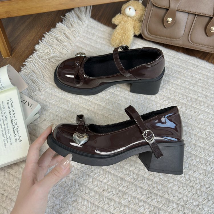 활 메리 제인 여성 신발 2024 여름 새로운 스커트 버클 JK 프렌치 레트로 굵은 작은 가죽 신발스토어 가기