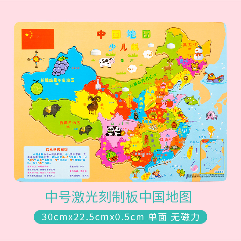 큰 나무 자석 중국지도 퍼즐 두꺼운 세계 지리 퍼즐 초등 학생을위한 조기 교육 장난감스토어 가기