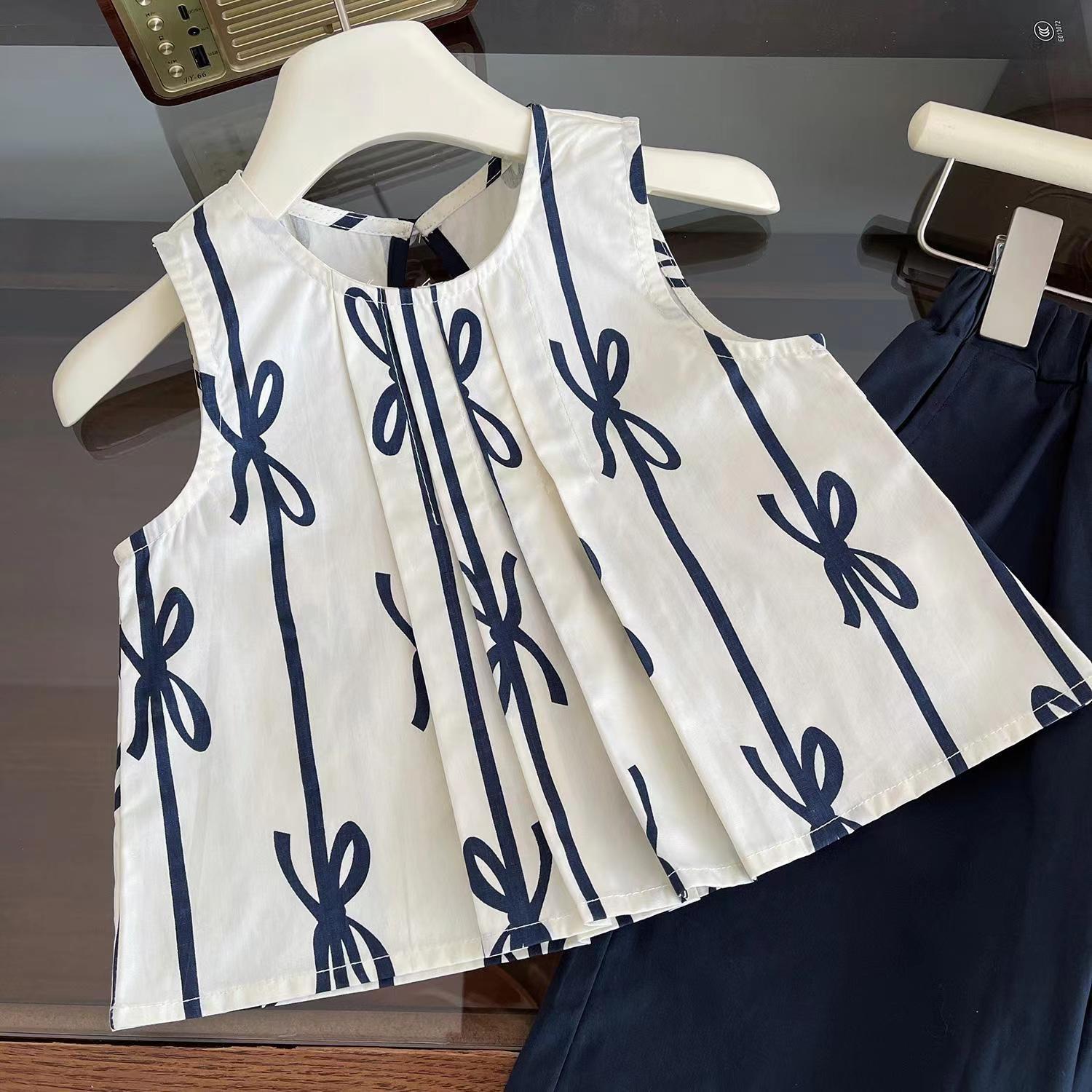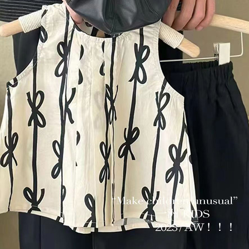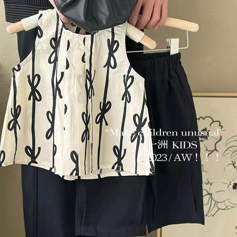 여자 세트 2024 여름 새 아기 민소매 인형 셔츠 한국 느슨한 서양식 5 점 바지 투피스 트렌디스토어 가기