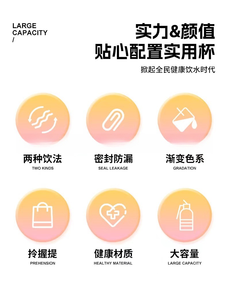 손잡이가 있는 새로운 고급스러운 대용량 컵, 야외 스포츠 물컵, 식품 등급 플라스틱 컵