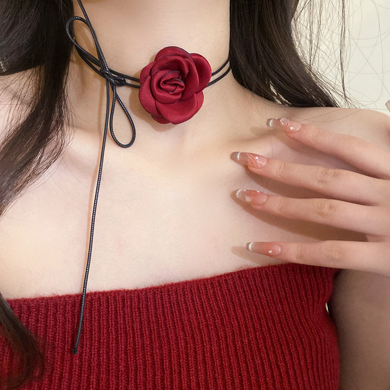 로즈 레이스 목걸이 여성 초커 동백 꽃 하이 엔드 기질 목 칼라 목 밴드 프랑스 쇄골 체인