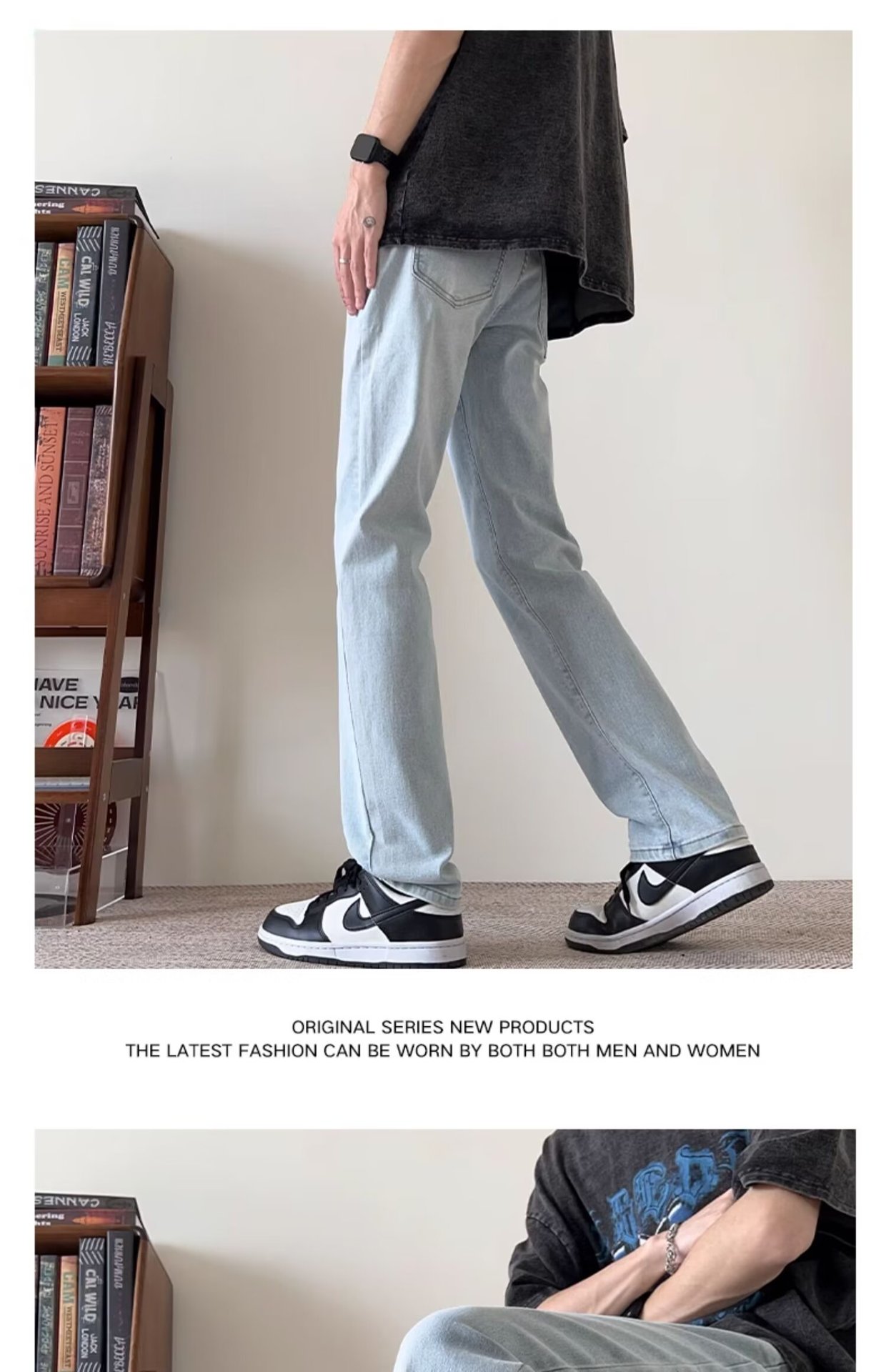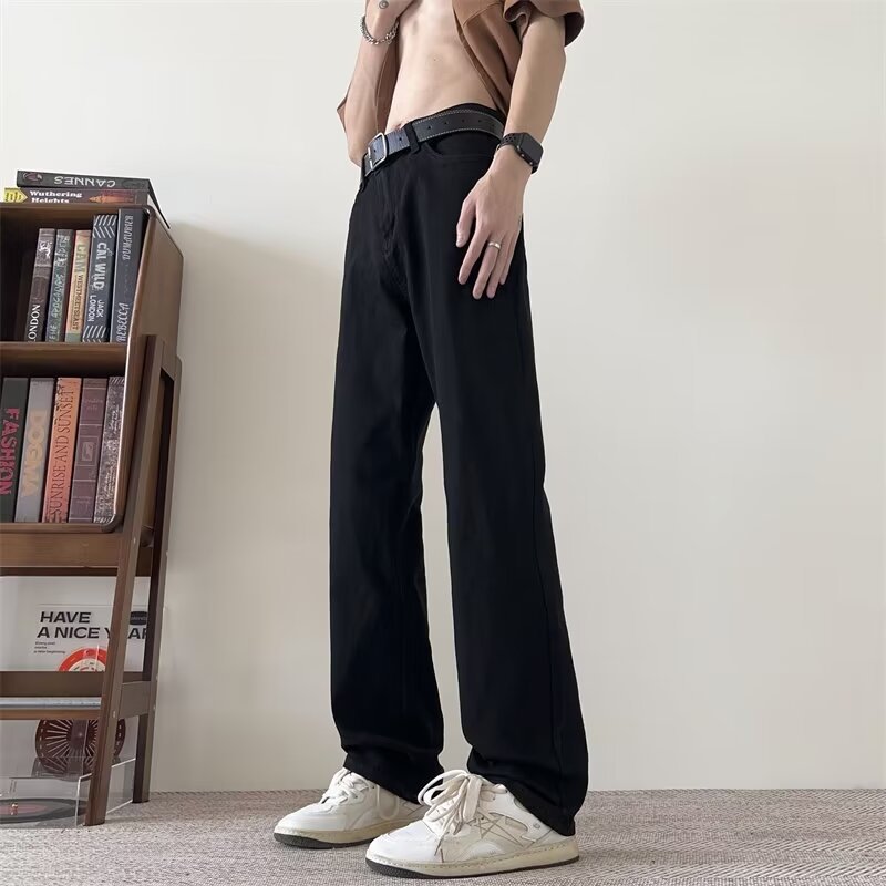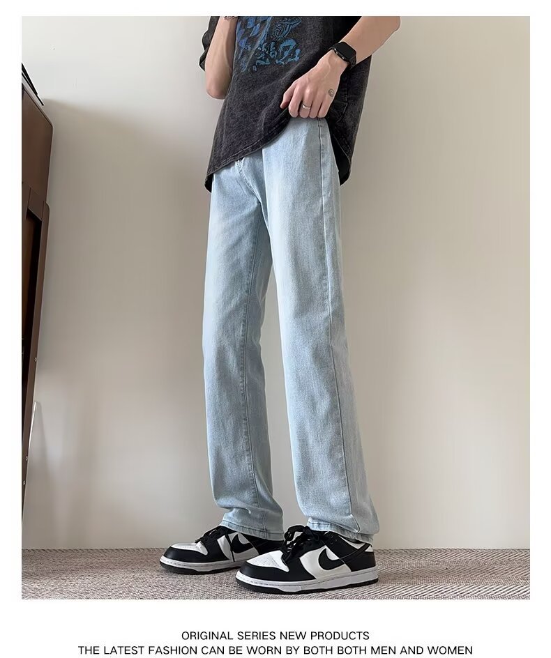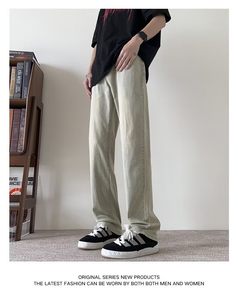 세탁 하이 스트리트 아메리칸 청바지 남성 여름 2024 새로운 복고풍 라이트 컬러 트렌디 브랜드 스트레이트 마이크로 롱 바지스토어 가기