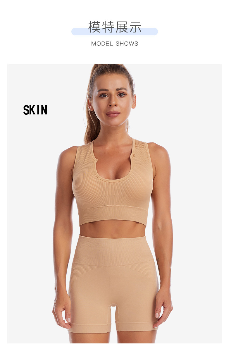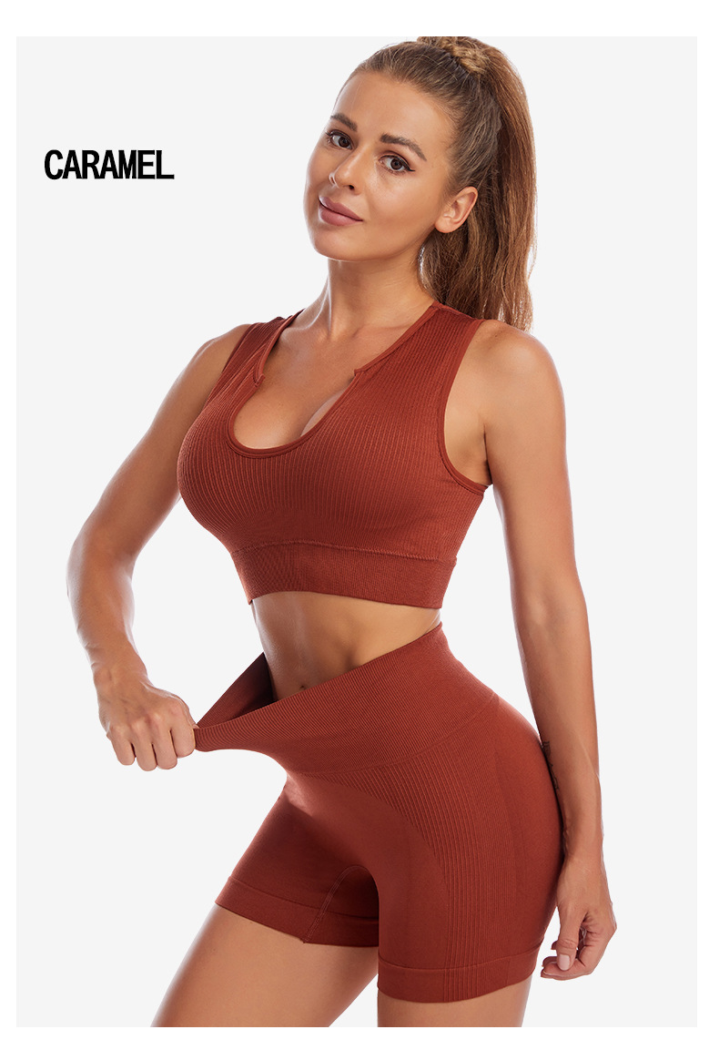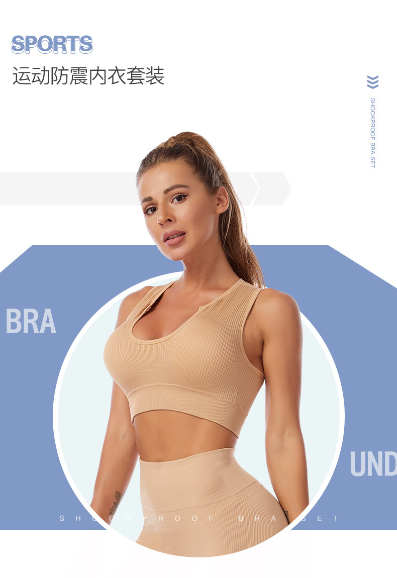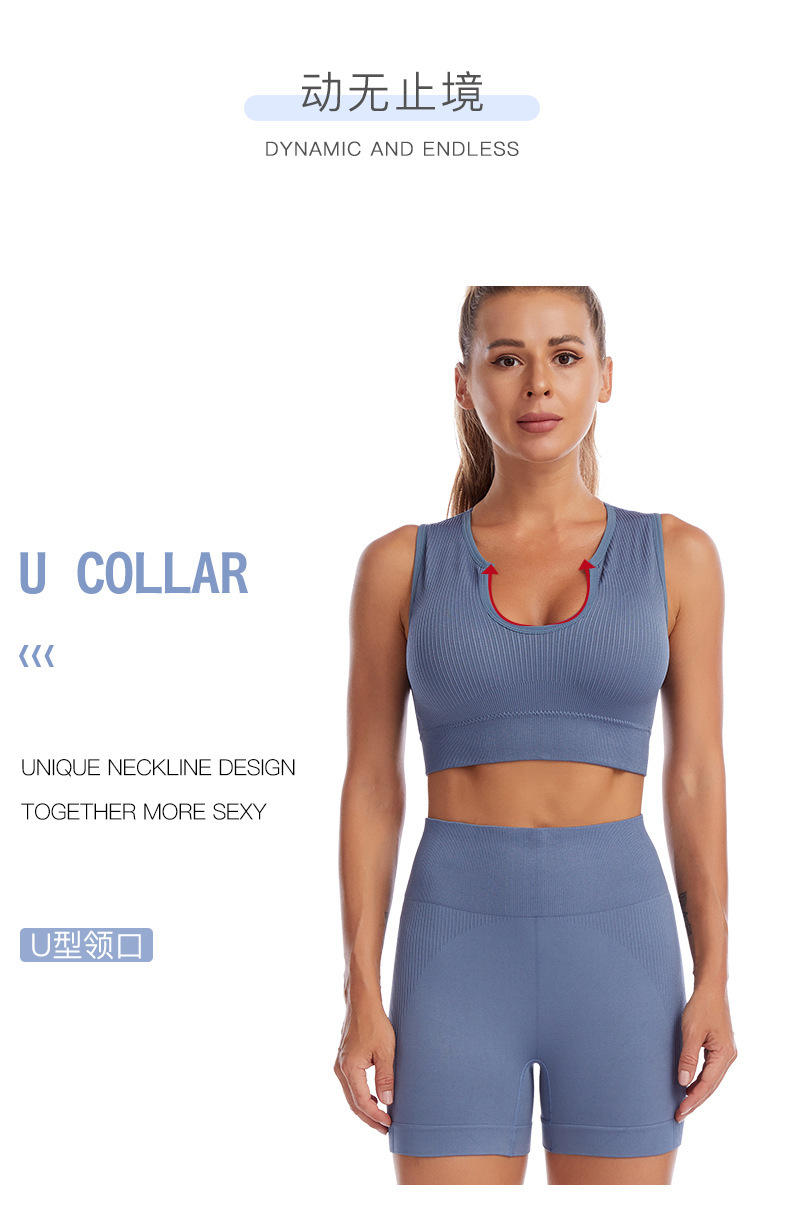 국경 간 요가 의류 세트 여성 피트니스 달리기 충격 방지 푸시 업 스포츠 속옷 섹시한 깊은 U 조끼 반바지 세트