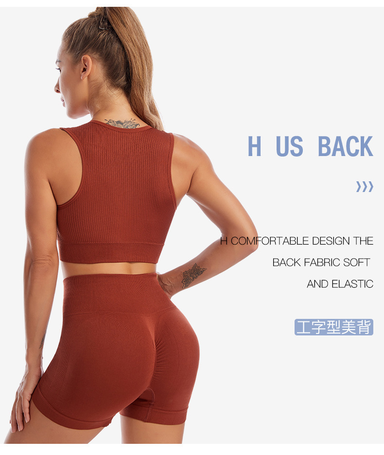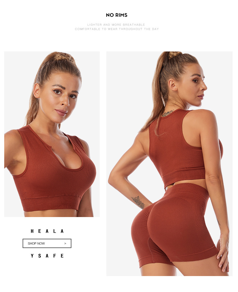국경 간 요가 의류 세트 여성 피트니스 달리기 충격 방지 푸시 업 스포츠 속옷 섹시한 깊은 U 조끼 반바지 세트스토어 가기