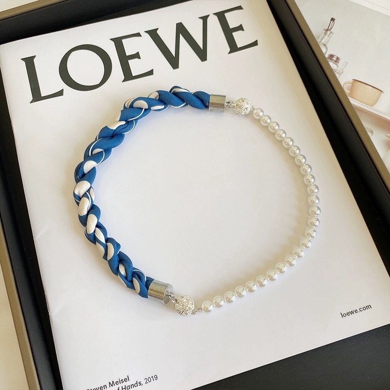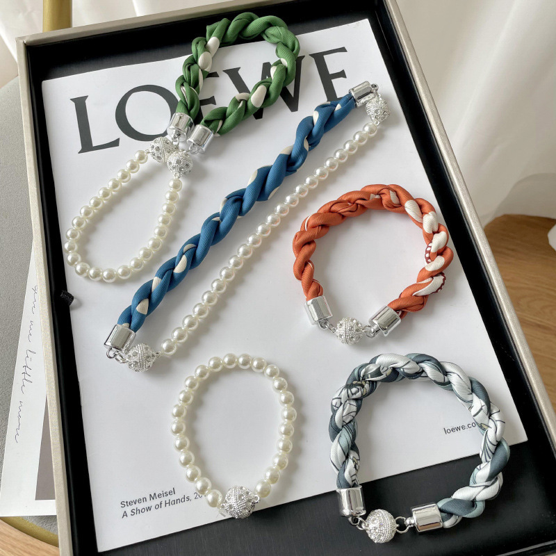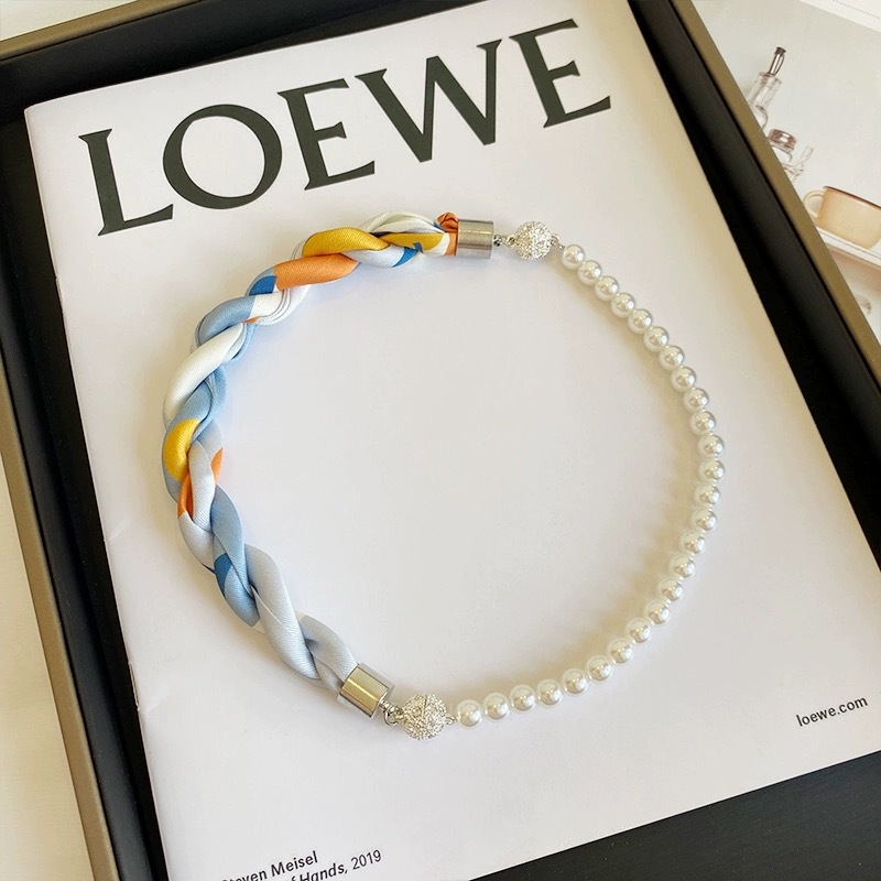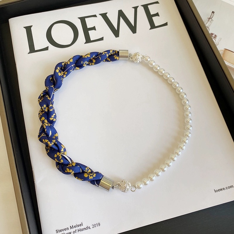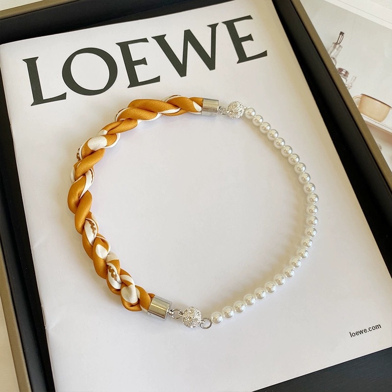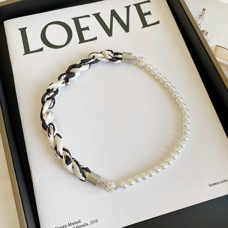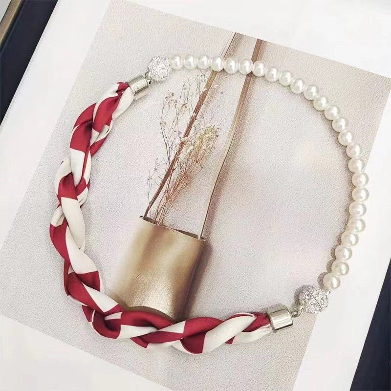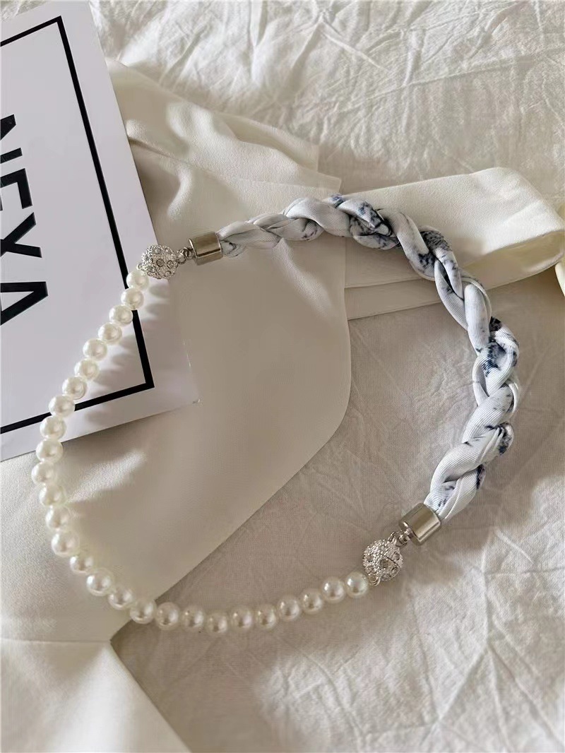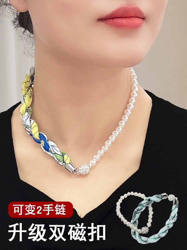 새로운 게으른 다기능 진주 실크 스카프 목걸이 여성 인터넷 인기 자석 버클 작은 스카프 봄과 여름 목 장식 Collarbone스토어 가기