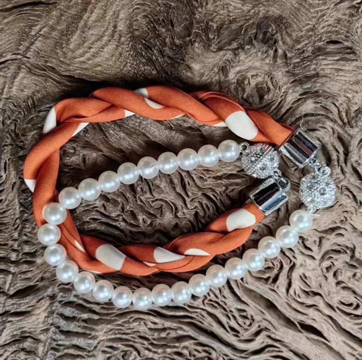 새로운 게으른 다기능 진주 실크 스카프 목걸이 여성 인터넷 인기 자석 버클 작은 스카프 봄과 여름 목 장식 Collarbone