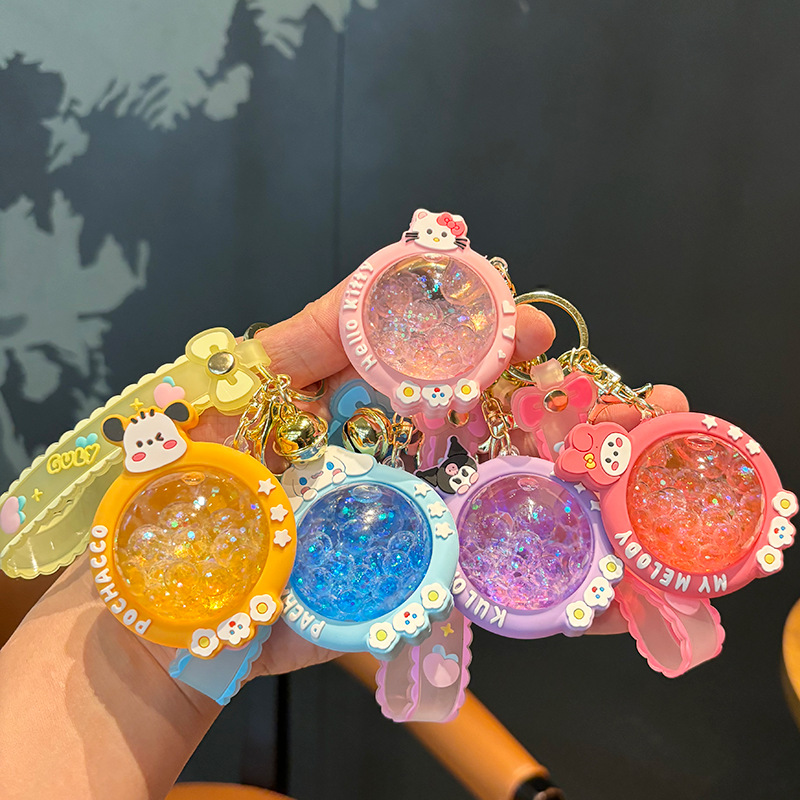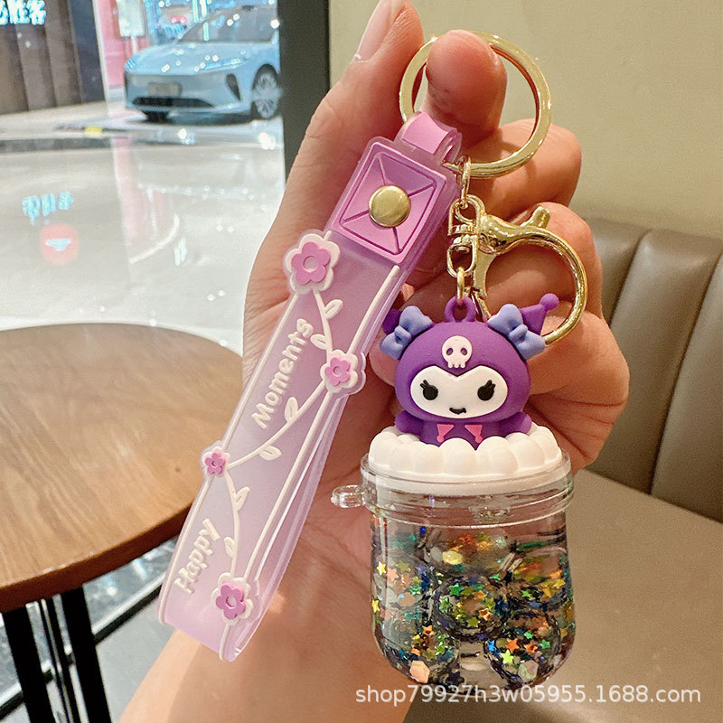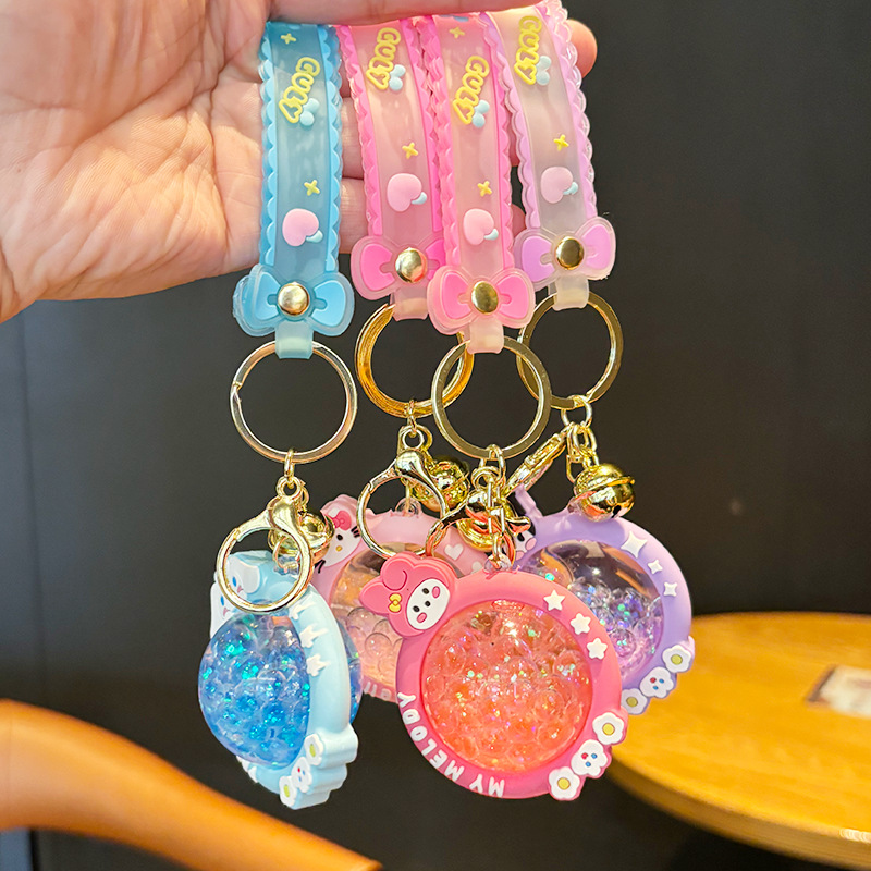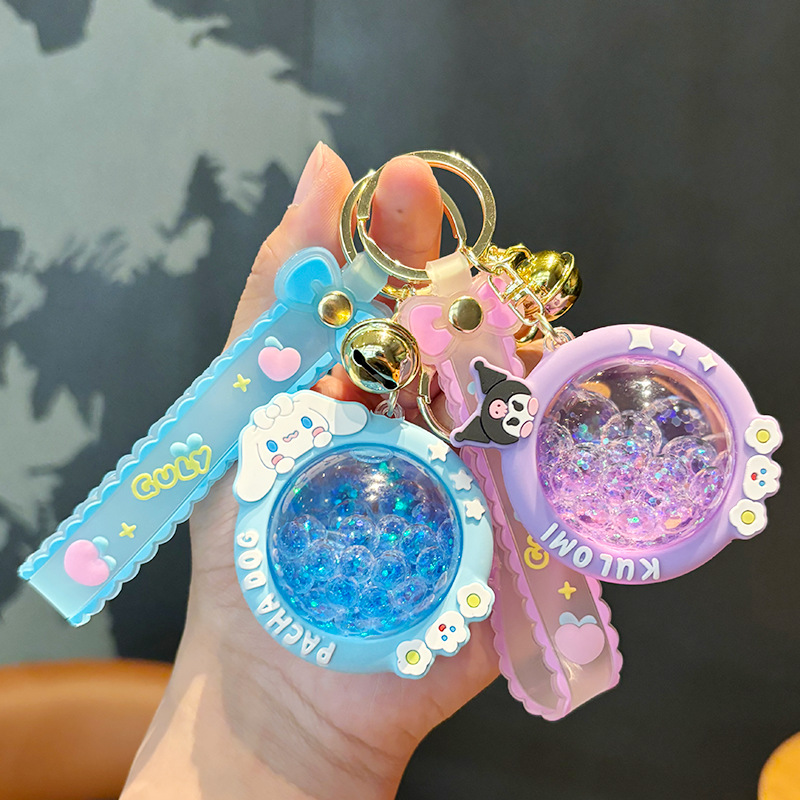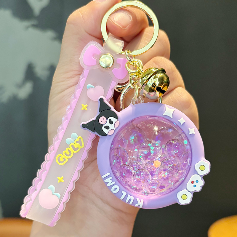 가방 펜던트 Sanrio Quicksand Kurome Planet 키 체인 오일 빛나는 큰 귀 개 크리스탈 공 작은 선물스토어 가기