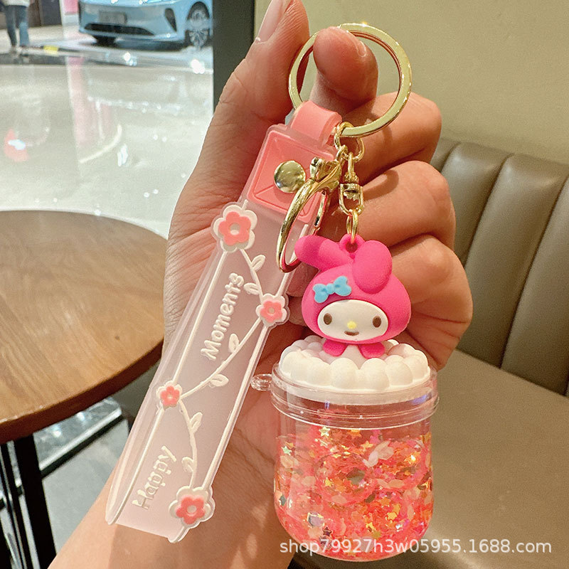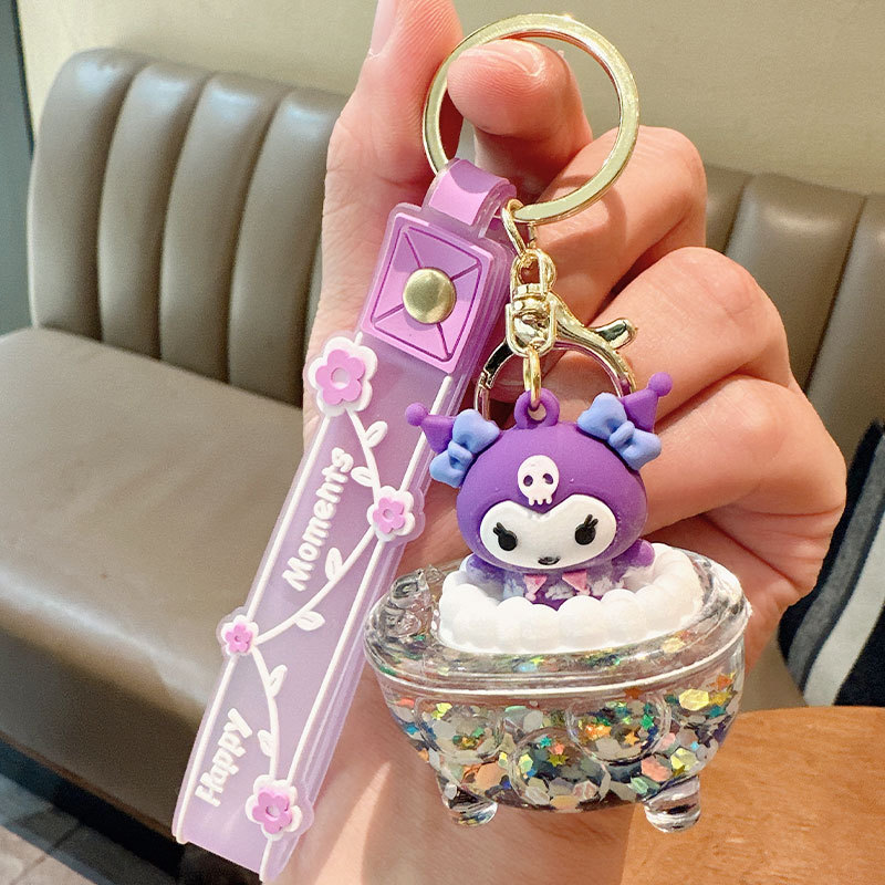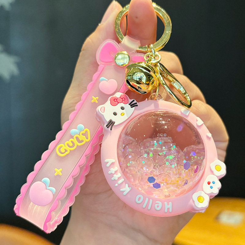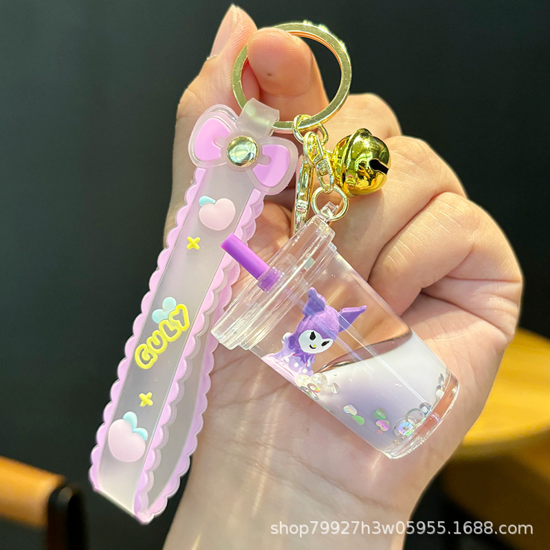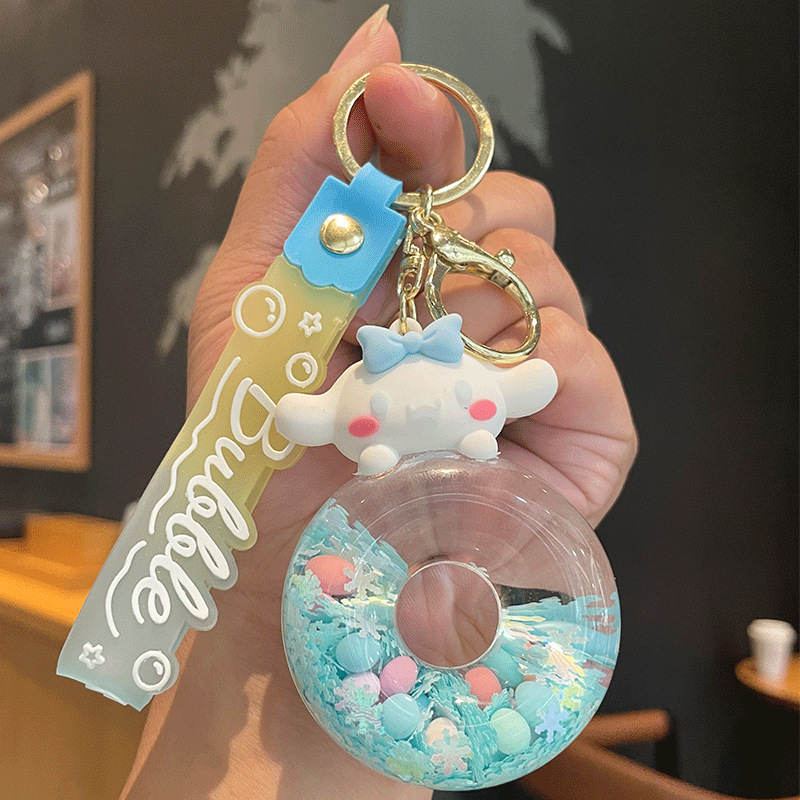 가방 펜던트 Sanrio Quicksand Kurome Planet 키 체인 오일 빛나는 큰 귀 개 크리스탈 공 작은 선물스토어 가기