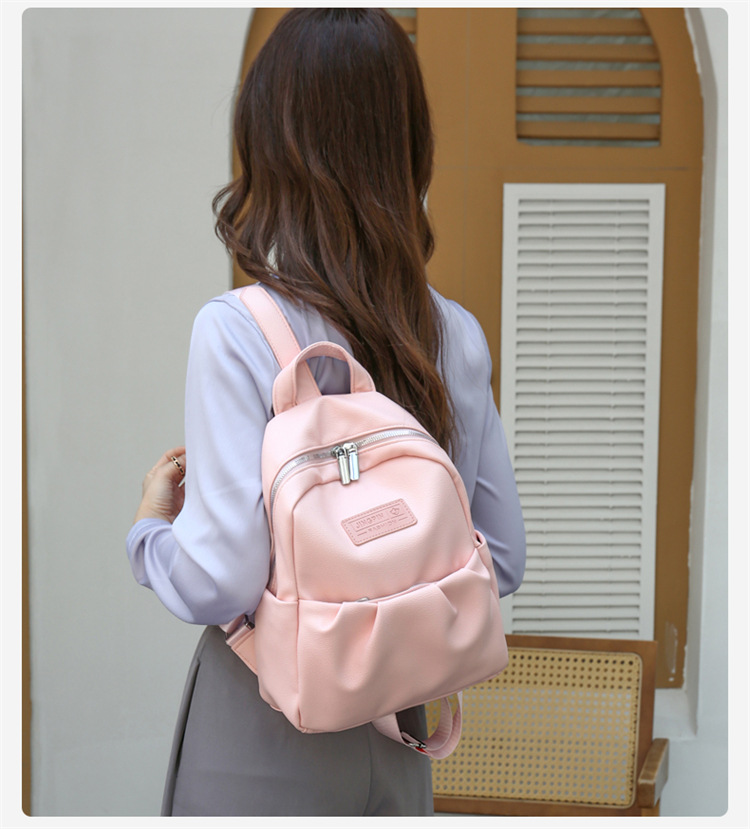 2024 새로운 간단한 단색 PU 배낭 여성 한국 스타일 패션 통근 작은 가방 모든 경기 캐주얼 여성 배낭