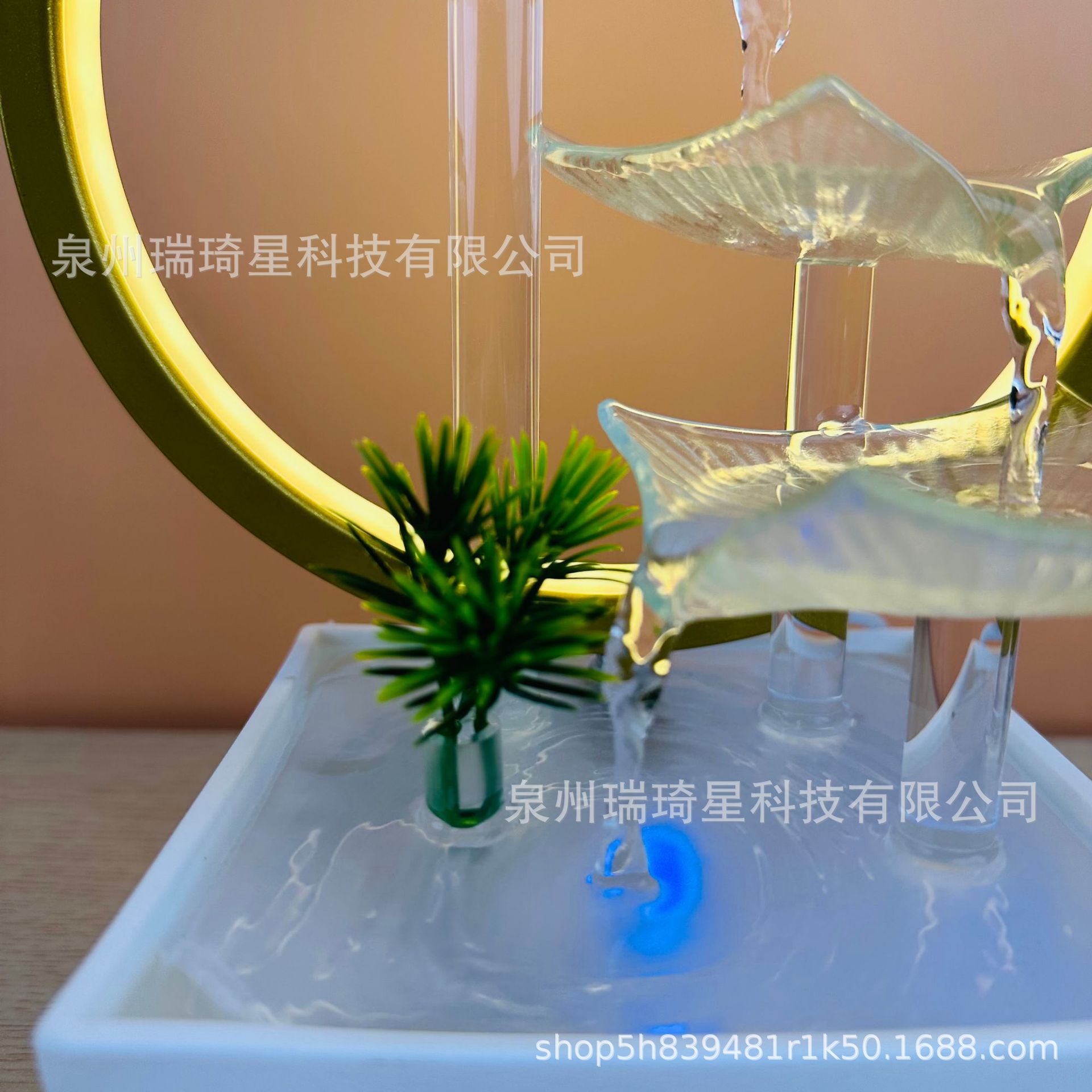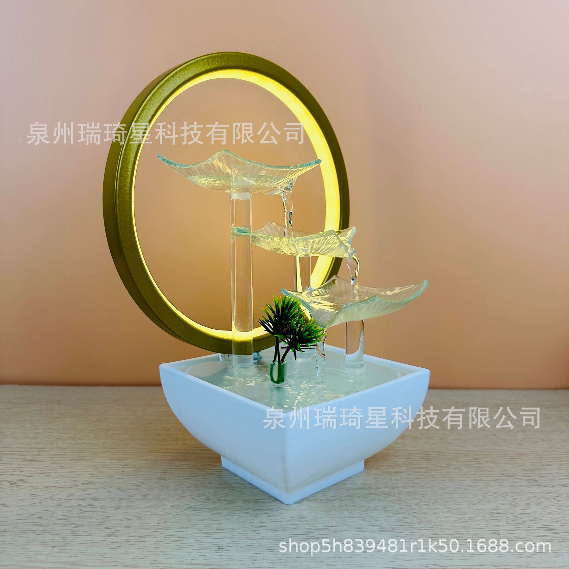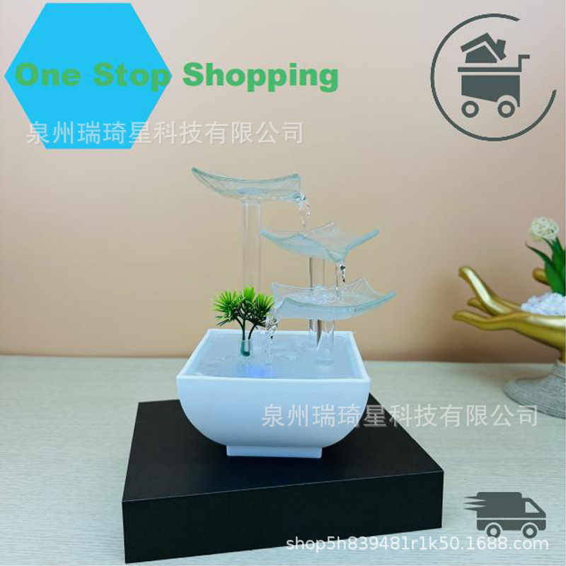 고급 유리 연잎 거실 순환식 분수 장식품 사무실 행운을 부르는 심플한 장식물 물방울스토어 가기