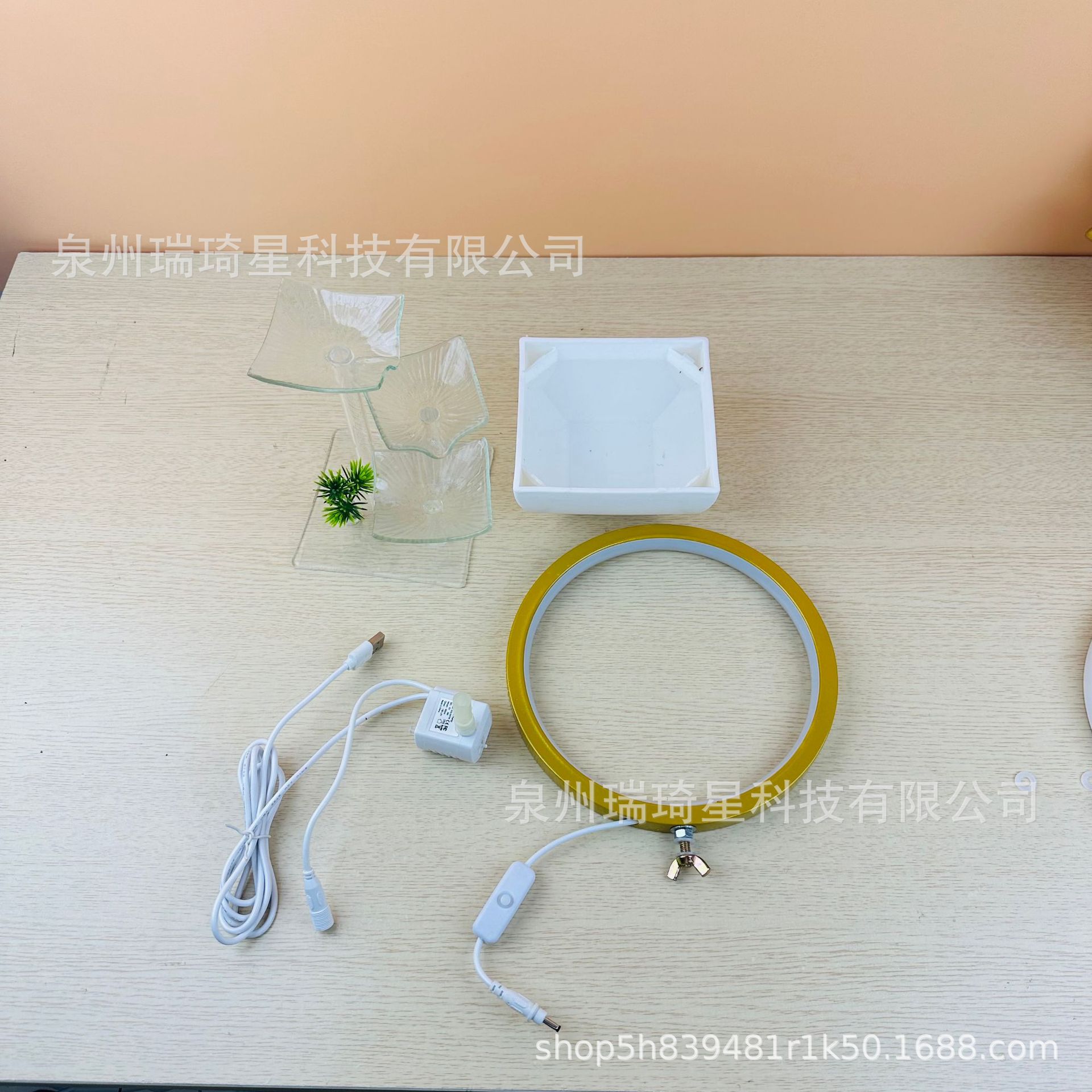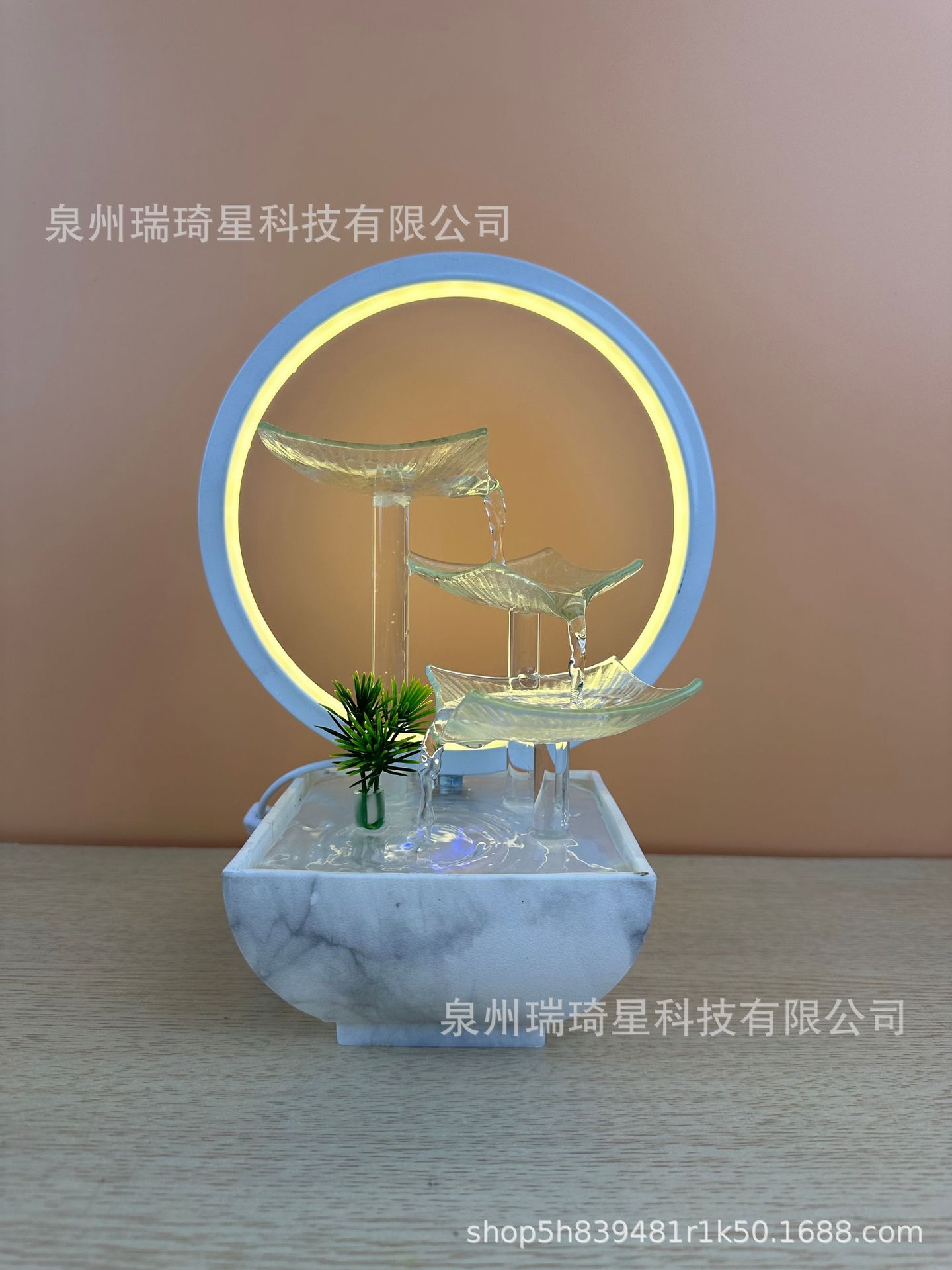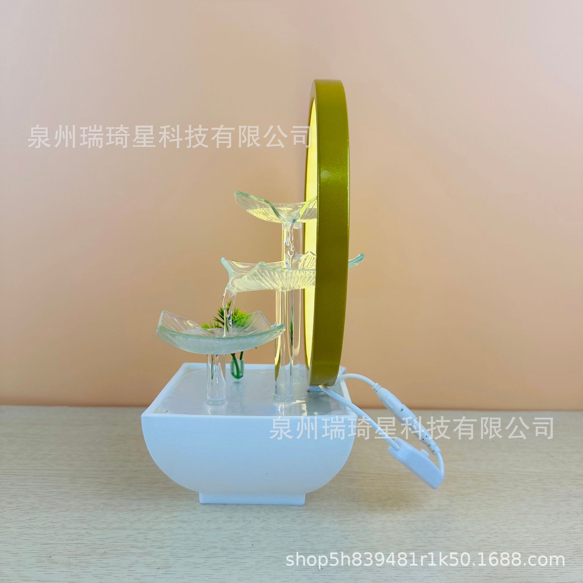 고급 유리 연잎 거실 순환식 분수 장식품 사무실 행운을 부르는 심플한 장식물 물방울스토어 가기